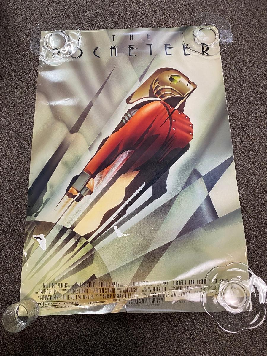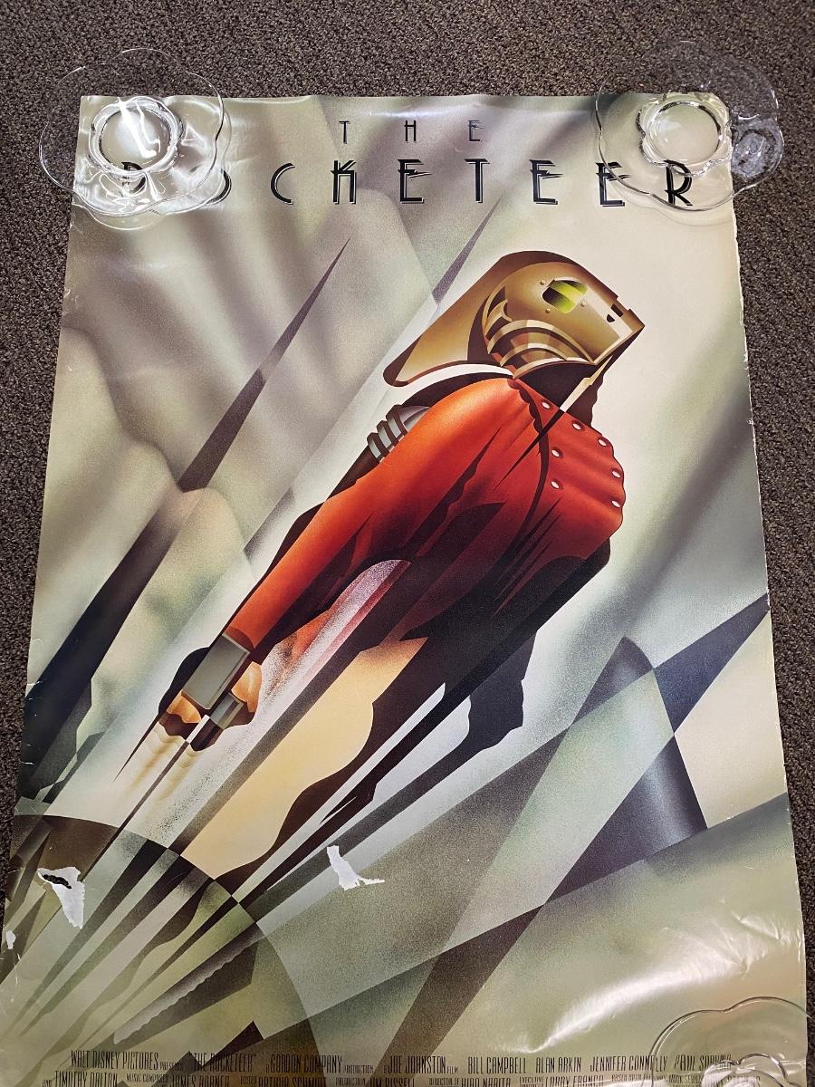 1991 Walt Disney Productions "The Rocketeer" one sheet movie poster. 40x27 size. There is wear along the edge as well as a creased fold on right lower corner and two spots damage spots near the lower left side.