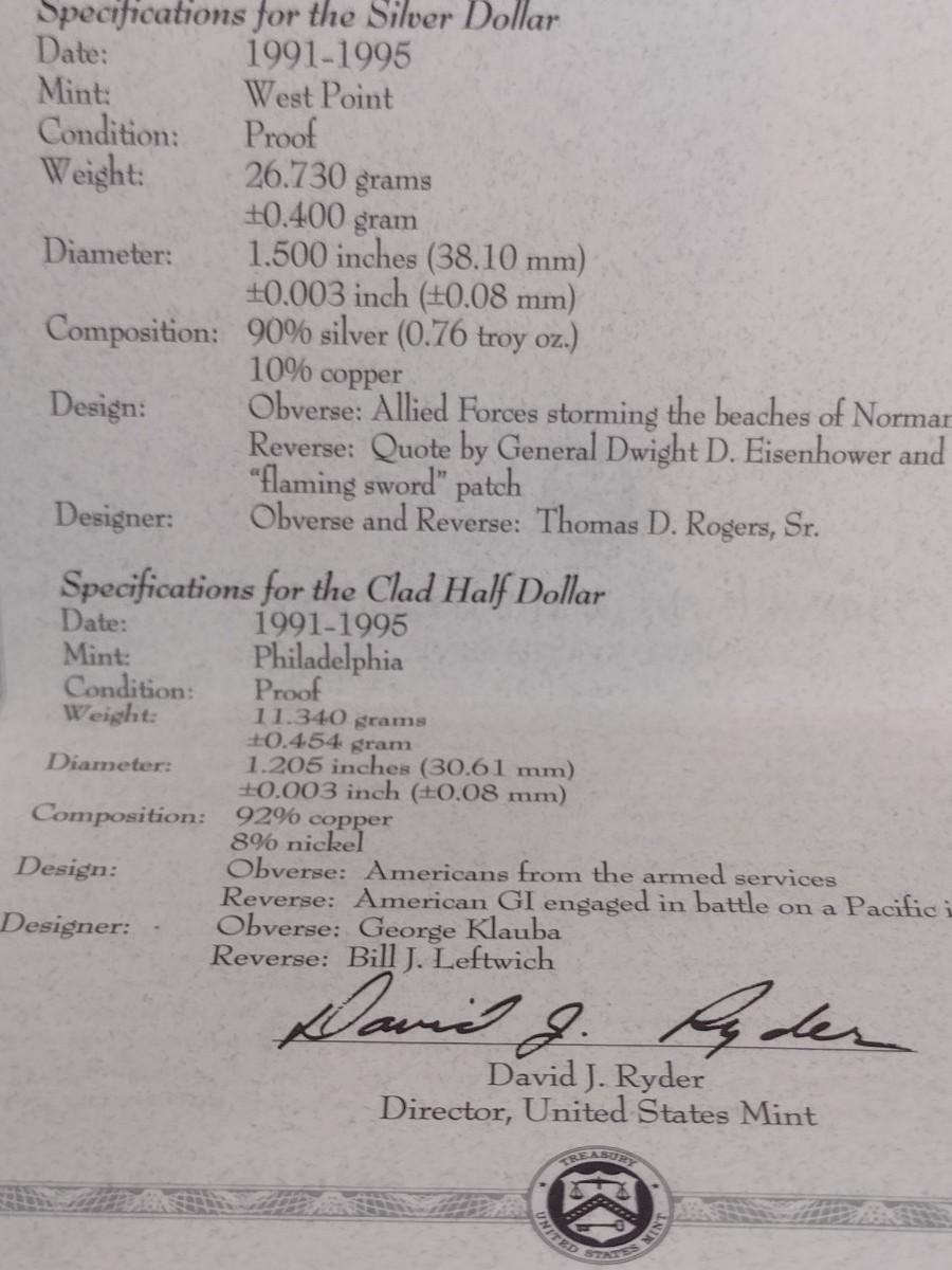 1991-1995 U.S. Mint WWII 50th Anniversary Two-Coin Proof Set Silver Dollar and Clad Half-Dollar (#52)
