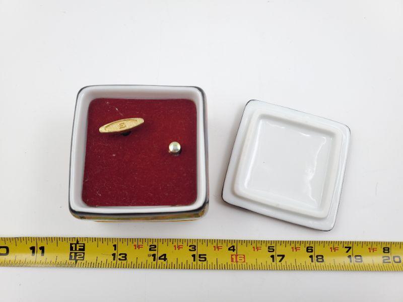 This is hand painted and signed, gorgeous porcelain music box. The music box is in good working condition and the other button is an on/off switch!