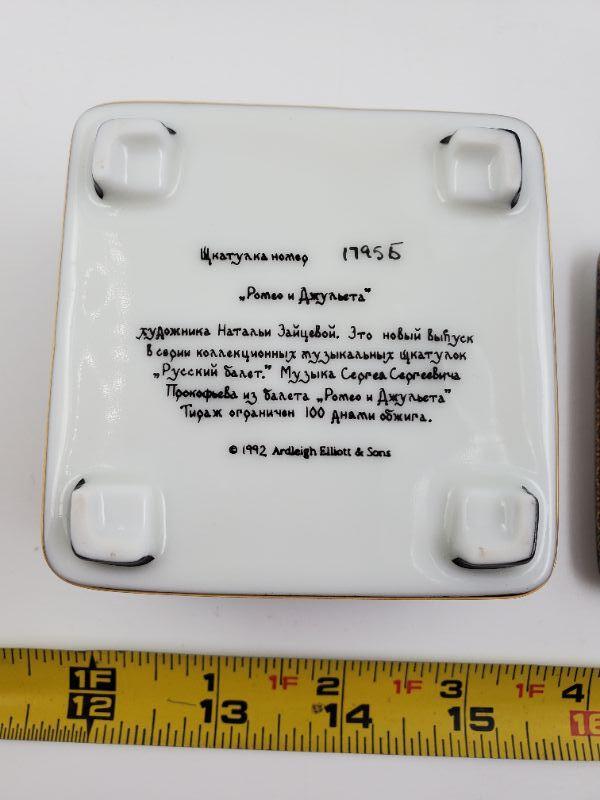1992 ARDLEIGH-ELLIOT & SONS RUSSIAN "ROMEO & JULIET" PORCELAIN MUSIC BOX