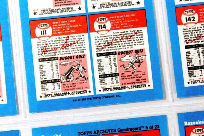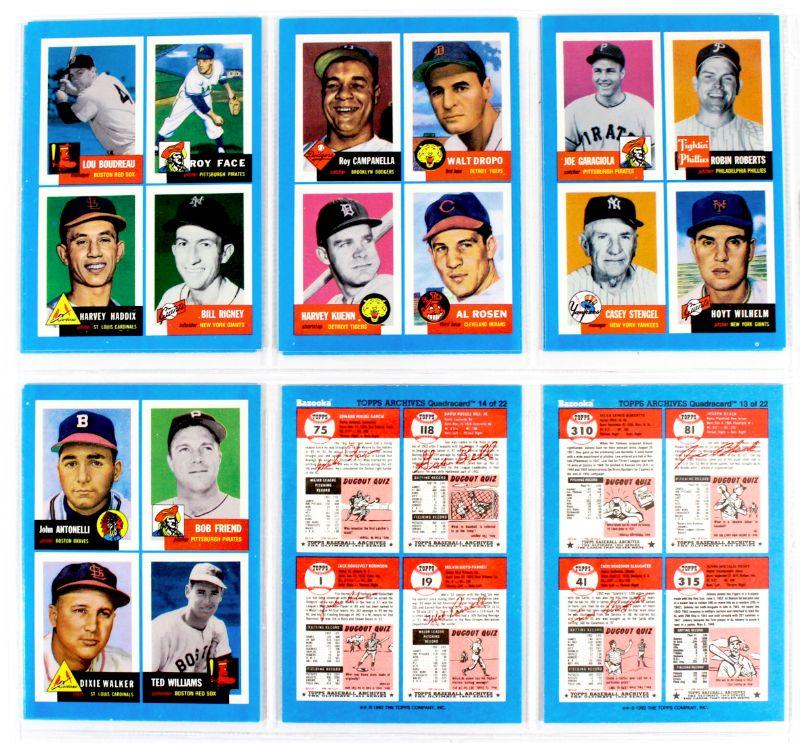 1992 Bazooka Cards featuring "1953 Topps Archives" Complete Limited Edition Set "Quadracard" 22 Card in Set - ALL MINT Condition.