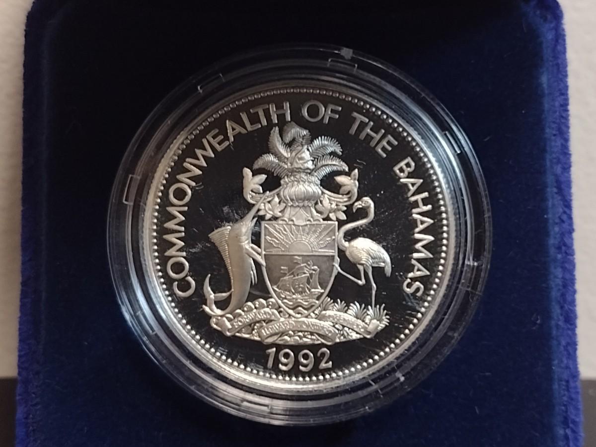 1992 Commonwealth of the Bahamas Discovery of the New World $5 Sterling Silver Proof Coin 18 grams (#14)