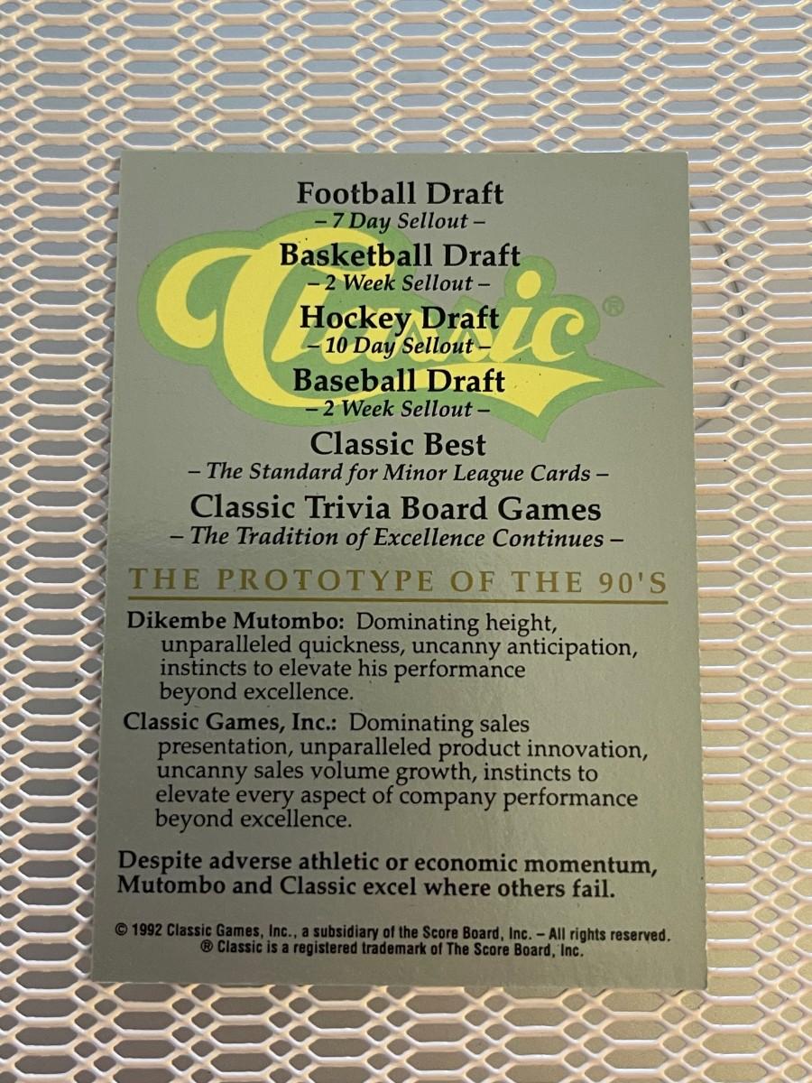 1992 Dikembe Mutombo 1/5,999 Classic game cards