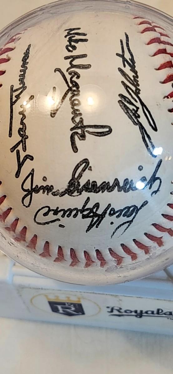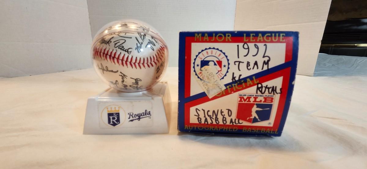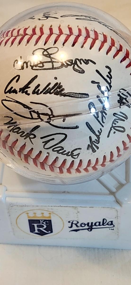 1992 Kansas City Royals Team Stamped Facsimile Signed Autographed Baseball Trammell w/ G Brett