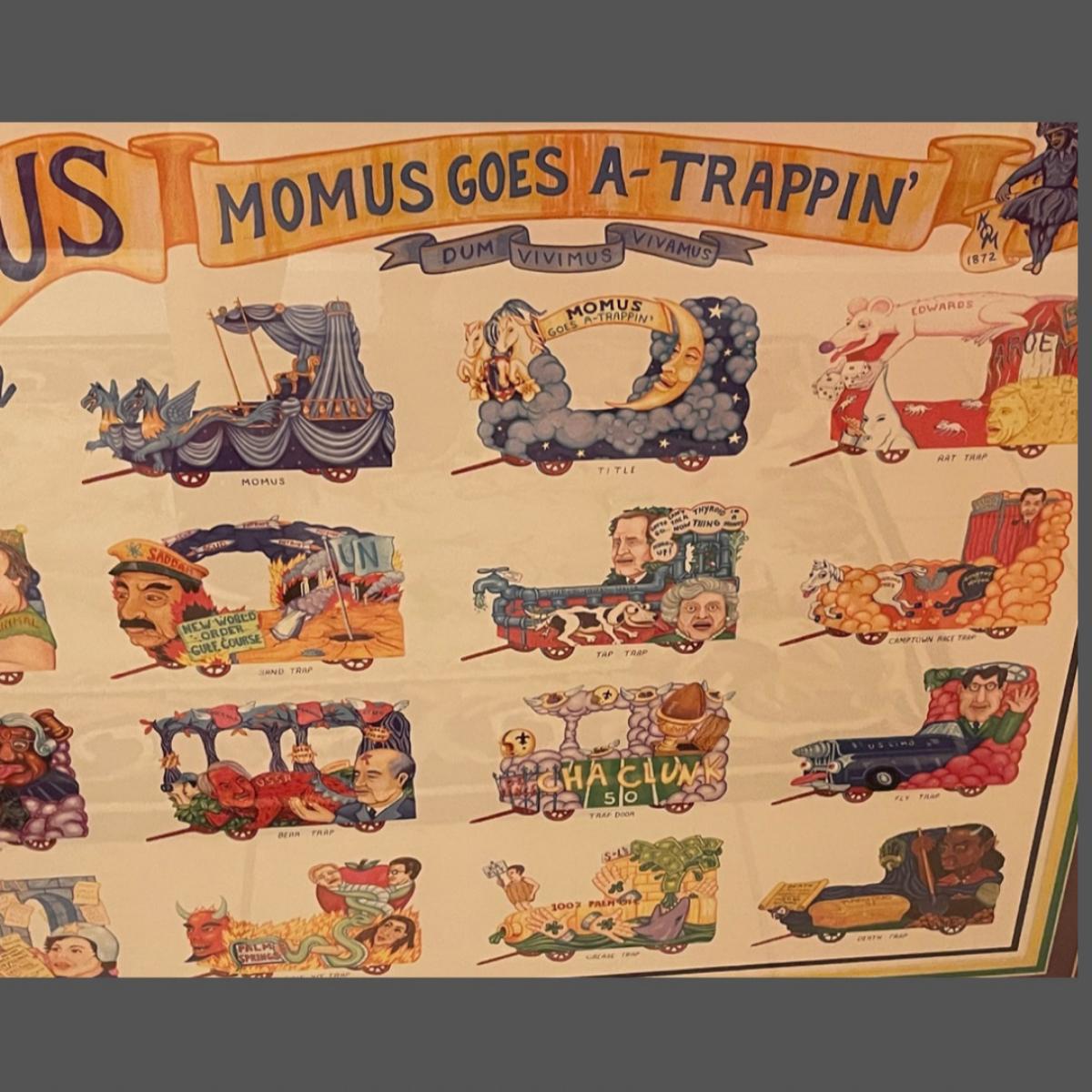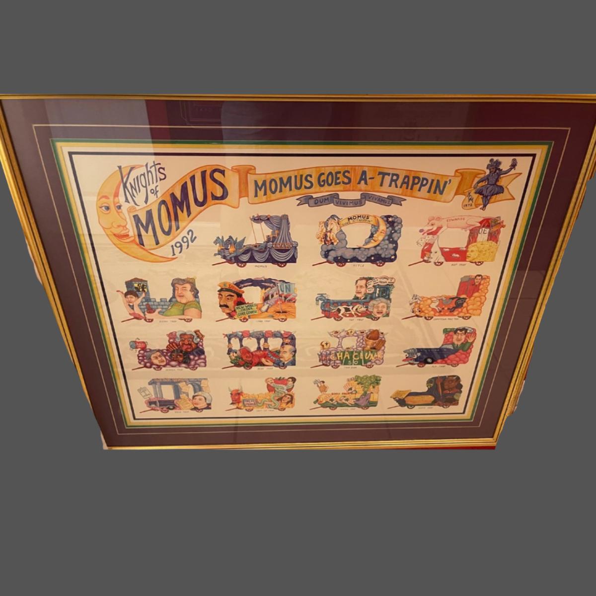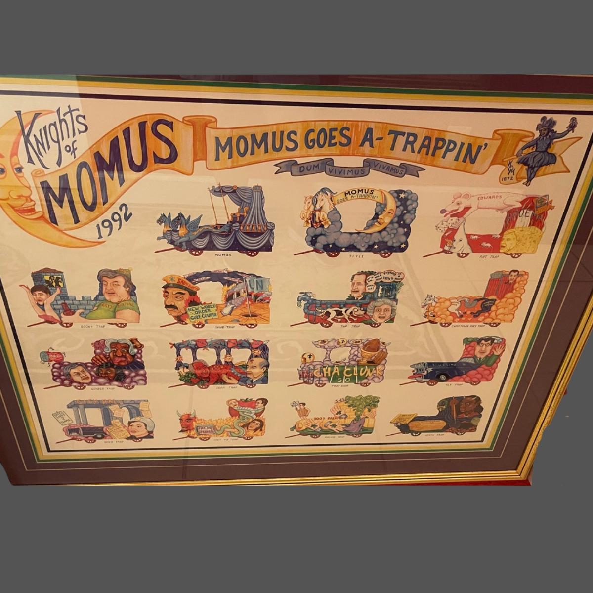 1992 Knights of Momus Official Framed Parade Print - Momus Goes A-Trappin