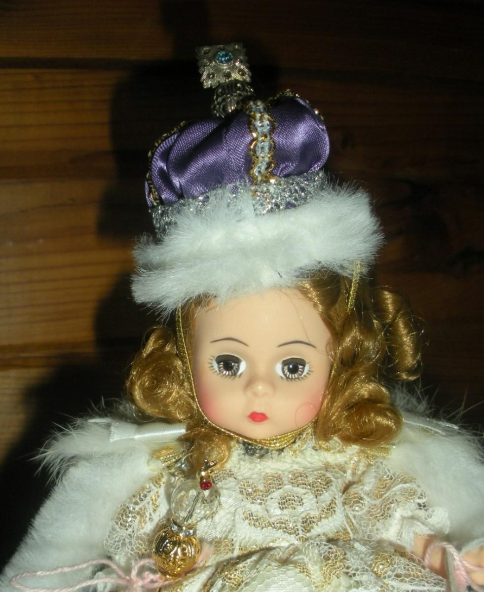 Great detail on this doll. Only made one year. 8" tall. Purple velvet robe and crown. Comes with scepter and wrist tag. Exceptional doll. In original box.