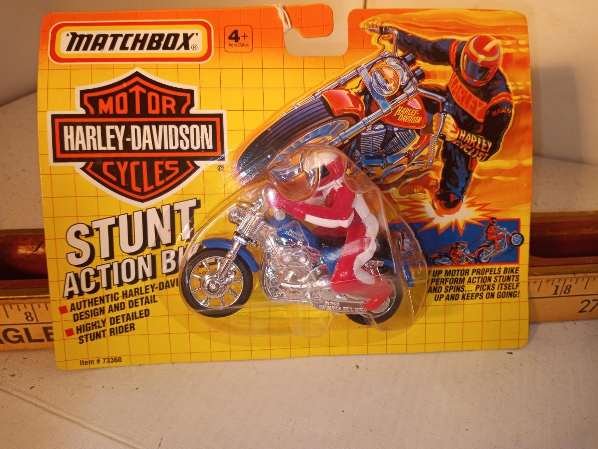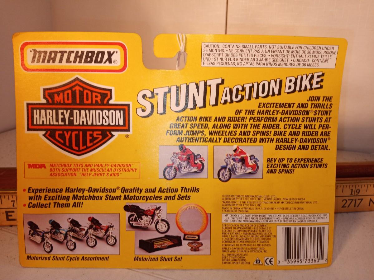 1992 MATCHBOX HARLEY-DAVIDSON MOTORCYCLE R/W/B STUNT ACTION BIKE NEW ON CARD