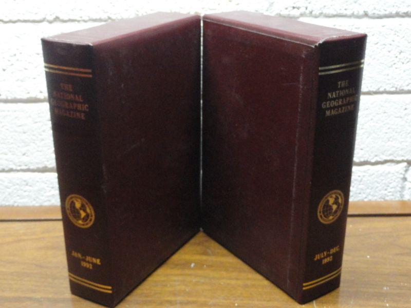 1992 National Geographic Magazine - complete set of 12 with faux leather cases Cases in great condition Books in normal good condition