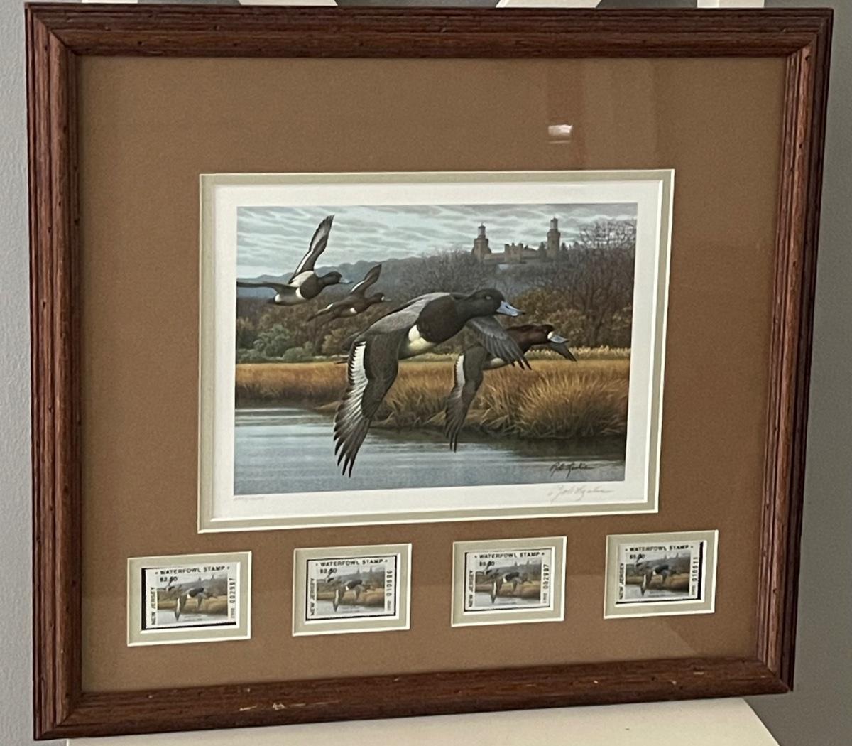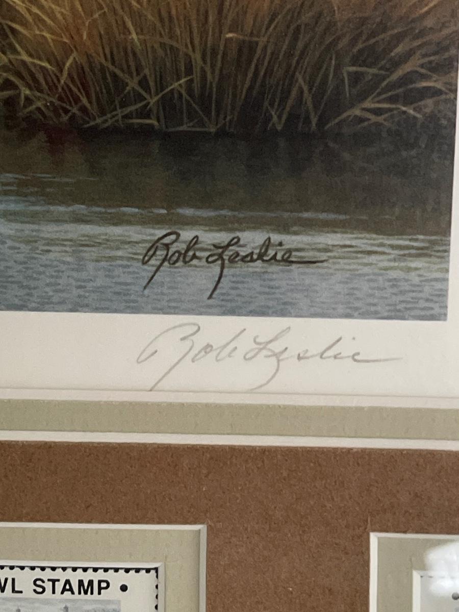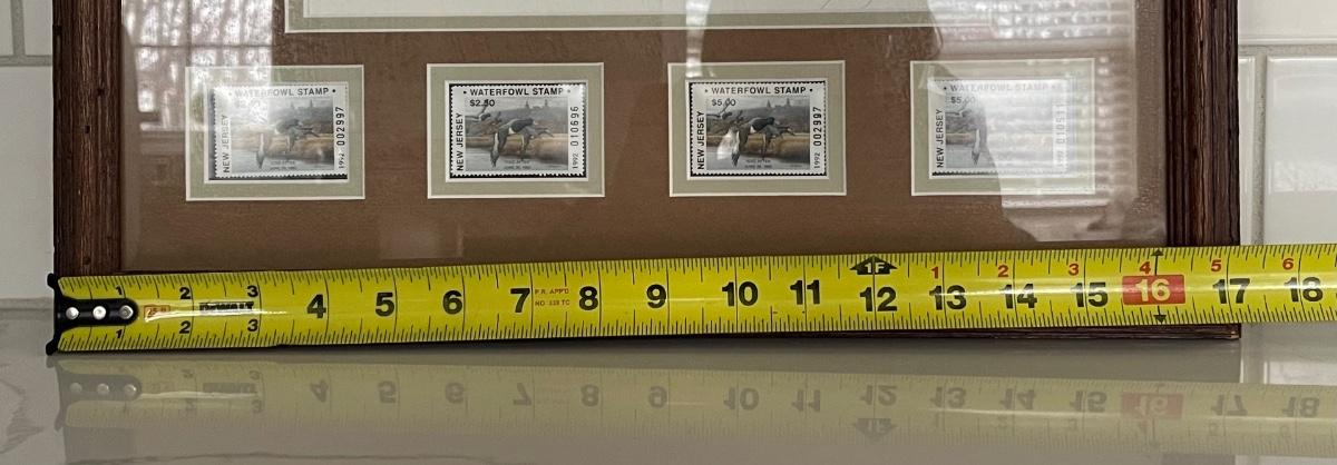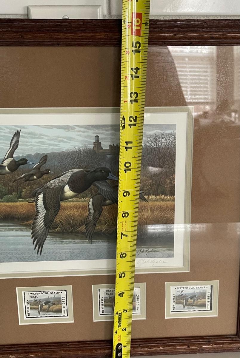 1992 New Jersey Rob Leslie Signed Waterfowl Print & 4 Stamps Framed