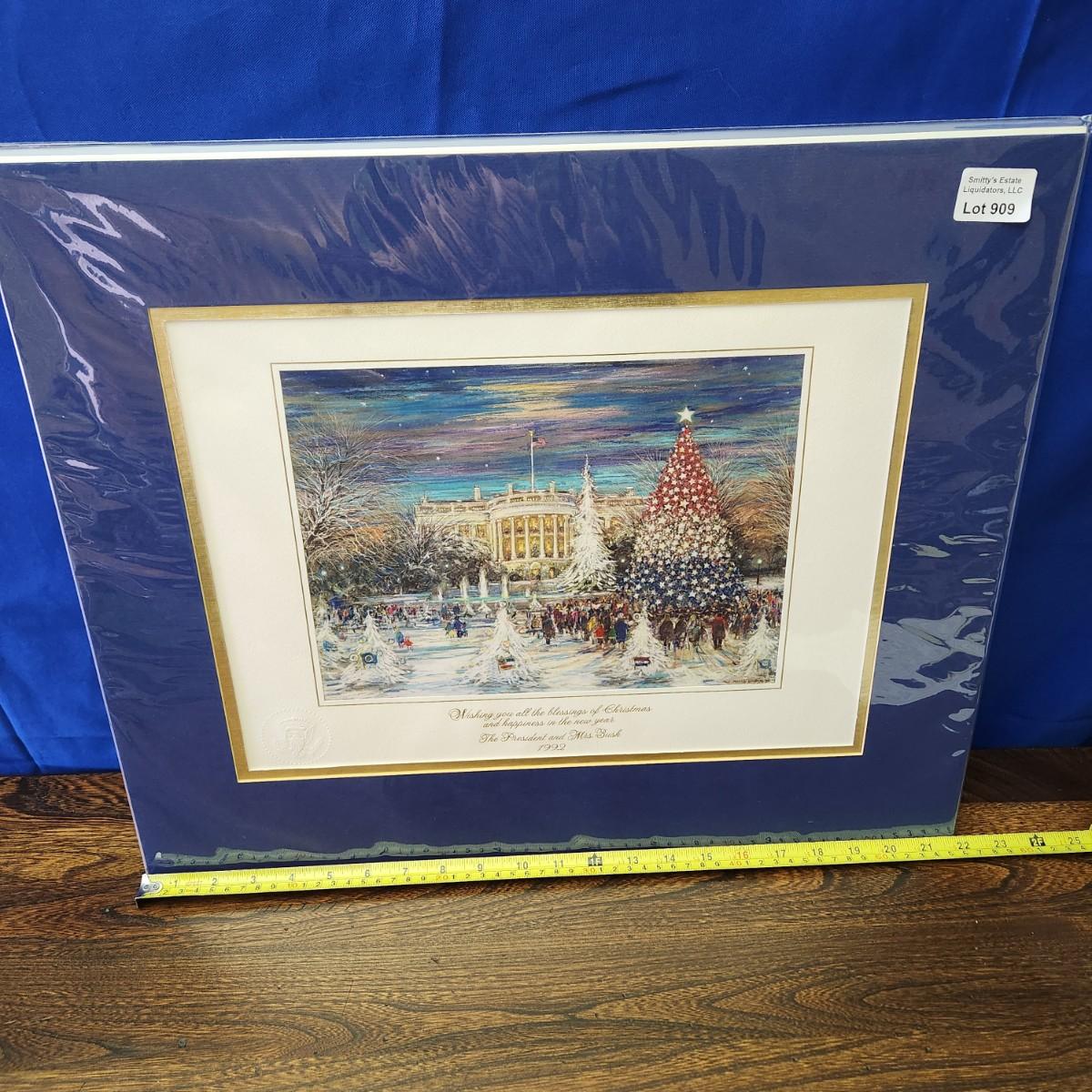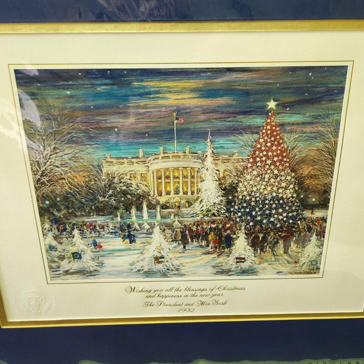 1992 President Bush and Mrs. Bush Framed Christmas card Matted