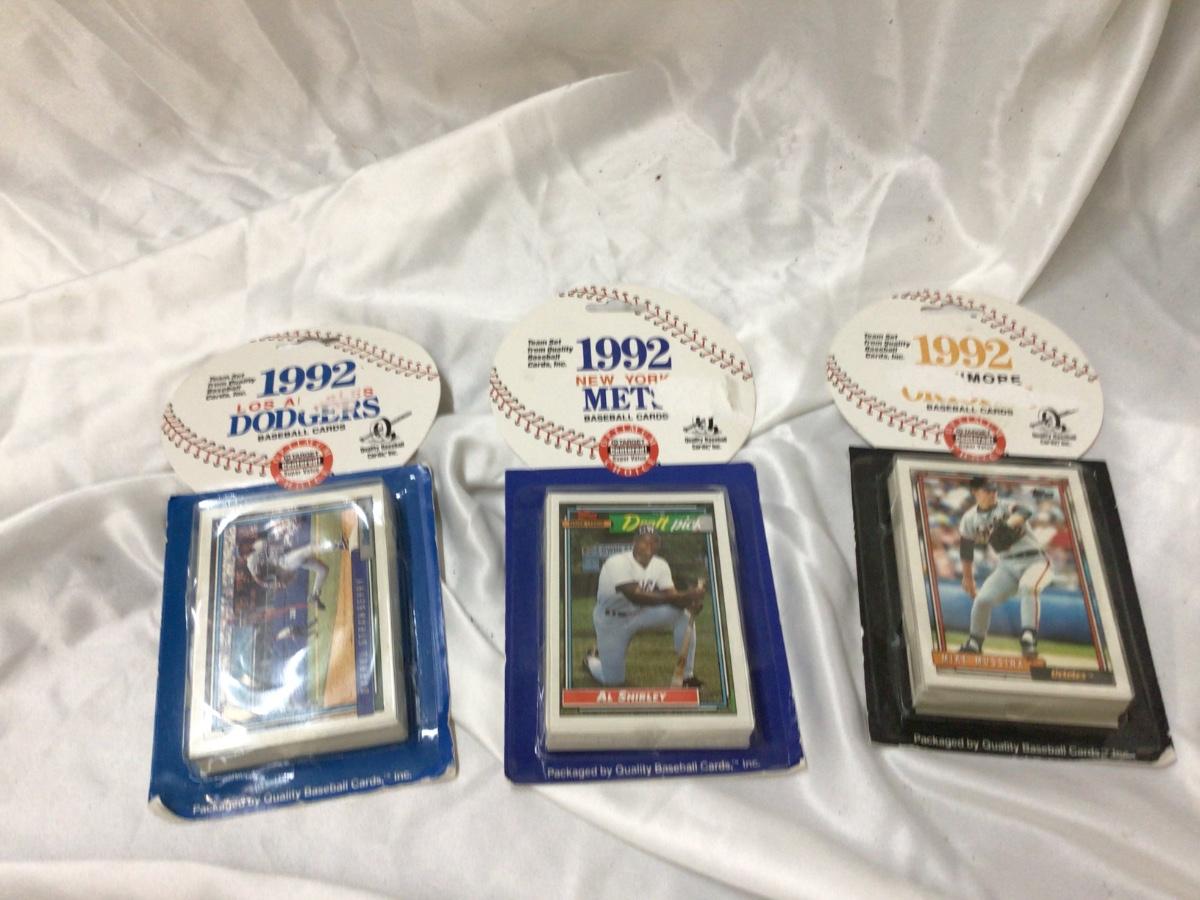 You get Baltimore Orioles, LA Dodgers, New York Mets. All team sets new in packaging. Some damage to packaging see pics.