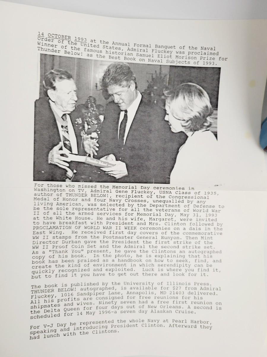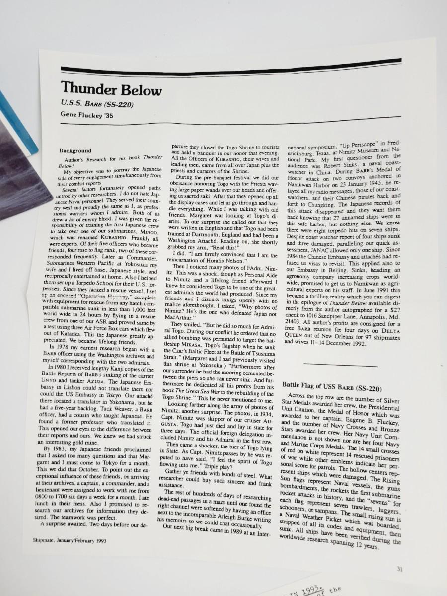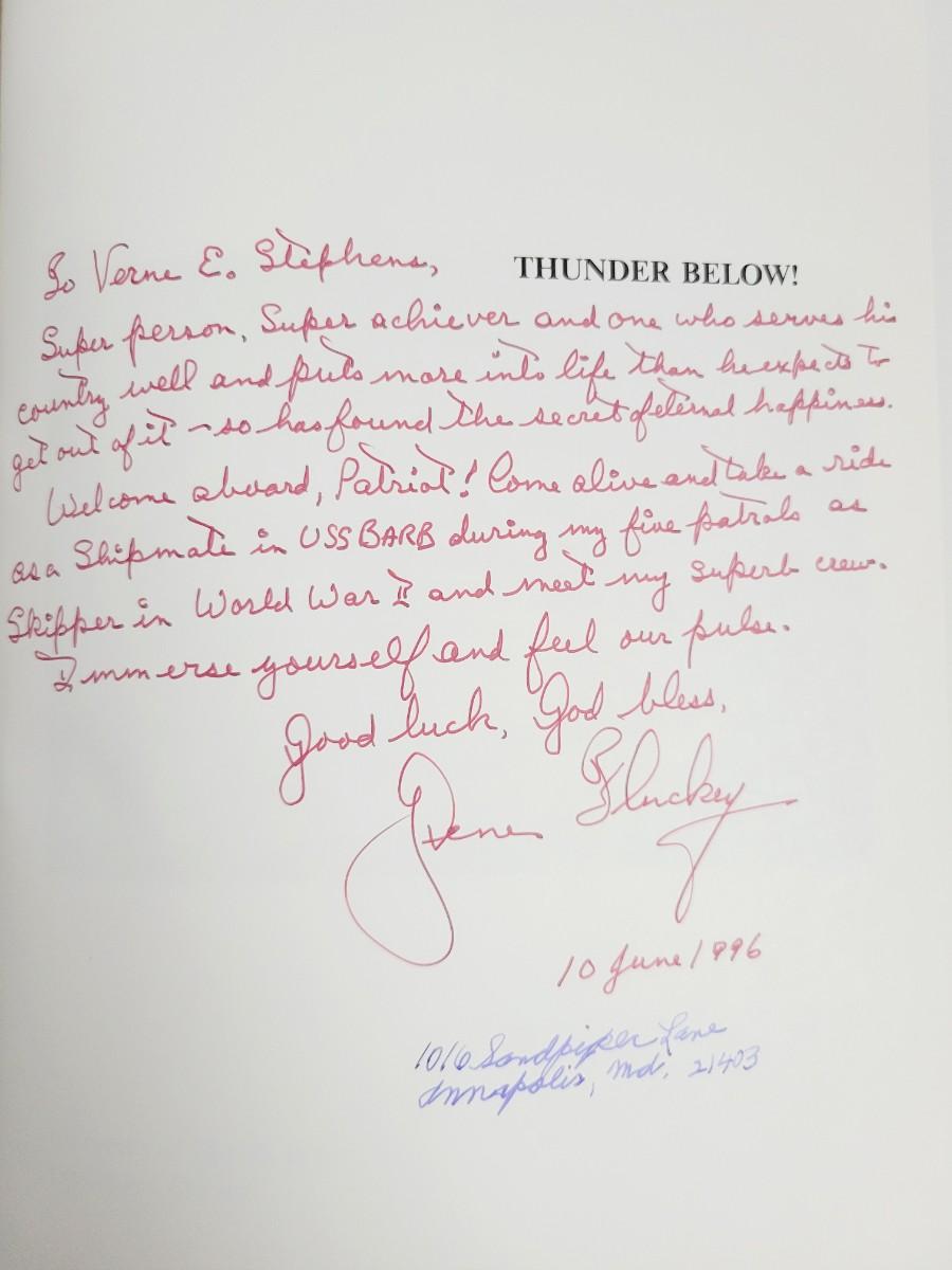 1992 THE THUNDER BELOW THE USS BARB BY ADMIRAL EUGENE B. FLUCKEY HARDBACK - SIGNED?
