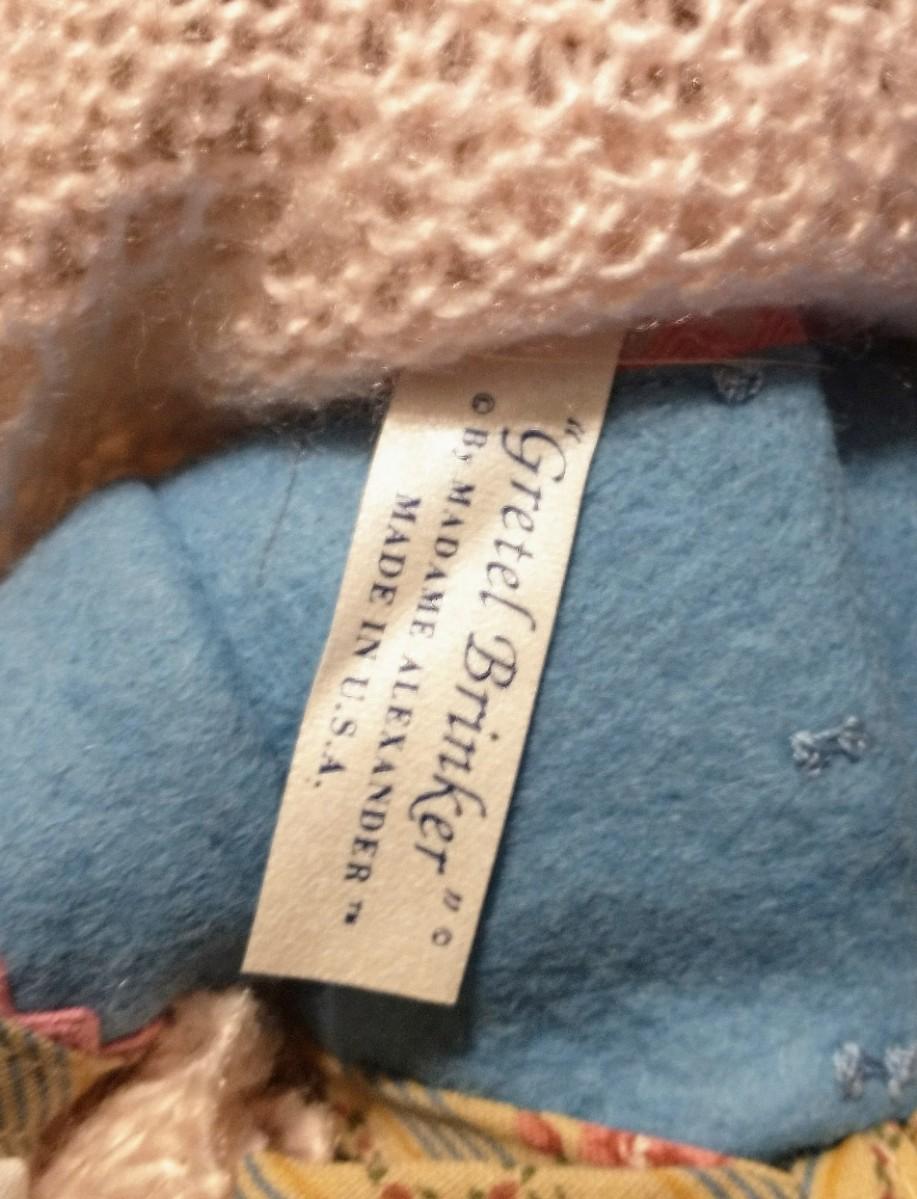 On this auction is a 11 1/2" 1993 Madame Alexander Gretel Brinker Doll. She is all original. Has her Madame Alexander tag on her dress, and her original hang tag. Has not been displayed. No box. Very nice doll.