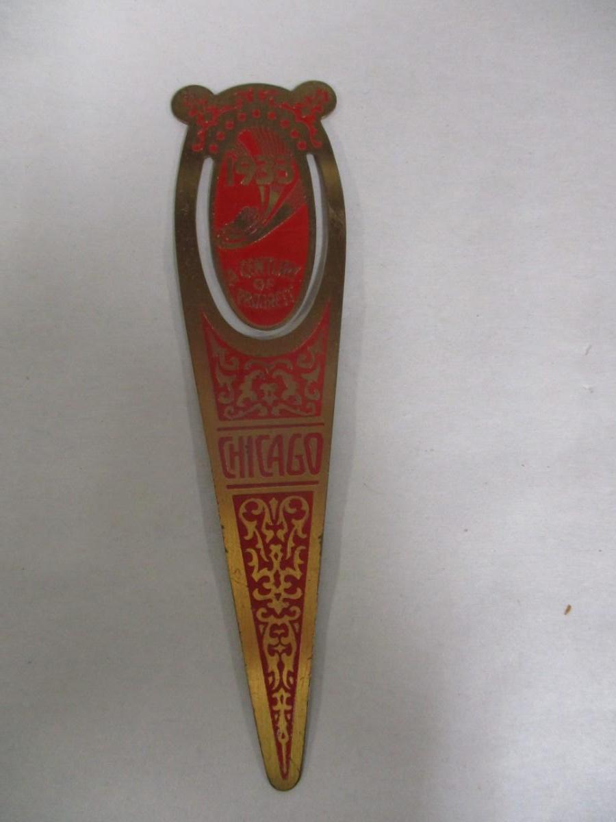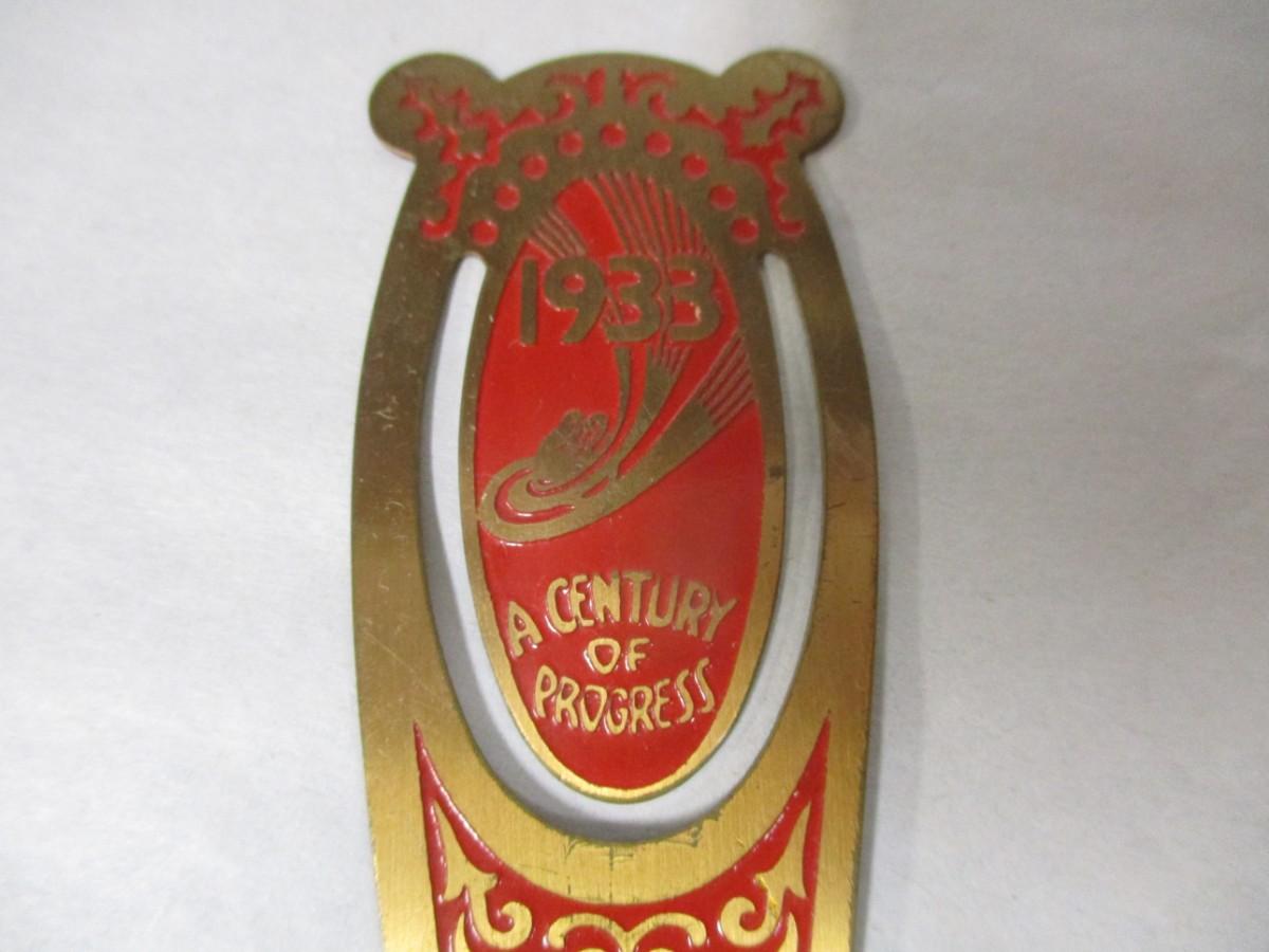 1933 Art Deco Brass 'A Century of Progress' Bookmark