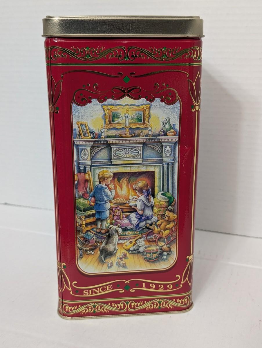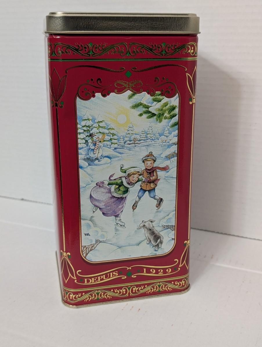 1993 Christie Premium Plus Crackers Tin Red Holiday Winter Skating Scene Collectible