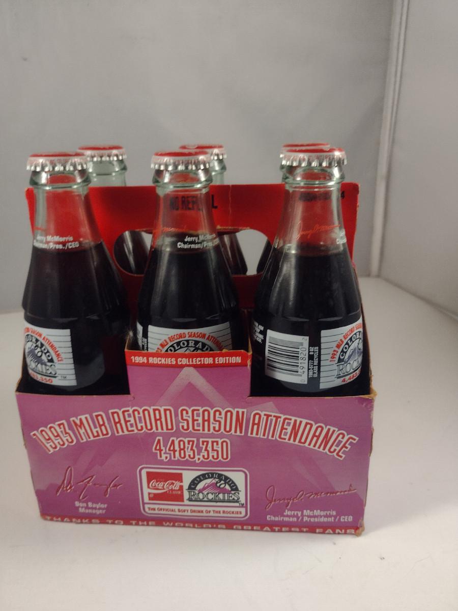 1993 Colorado Rockies MLB Coca-Cola Bottles with Paper Carrier