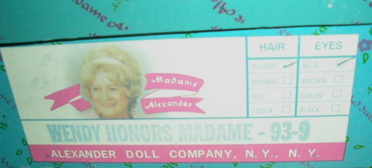 1993 Madame Alexander 8" Wendy Honors Madame 93-9 Limited Production of one year.
