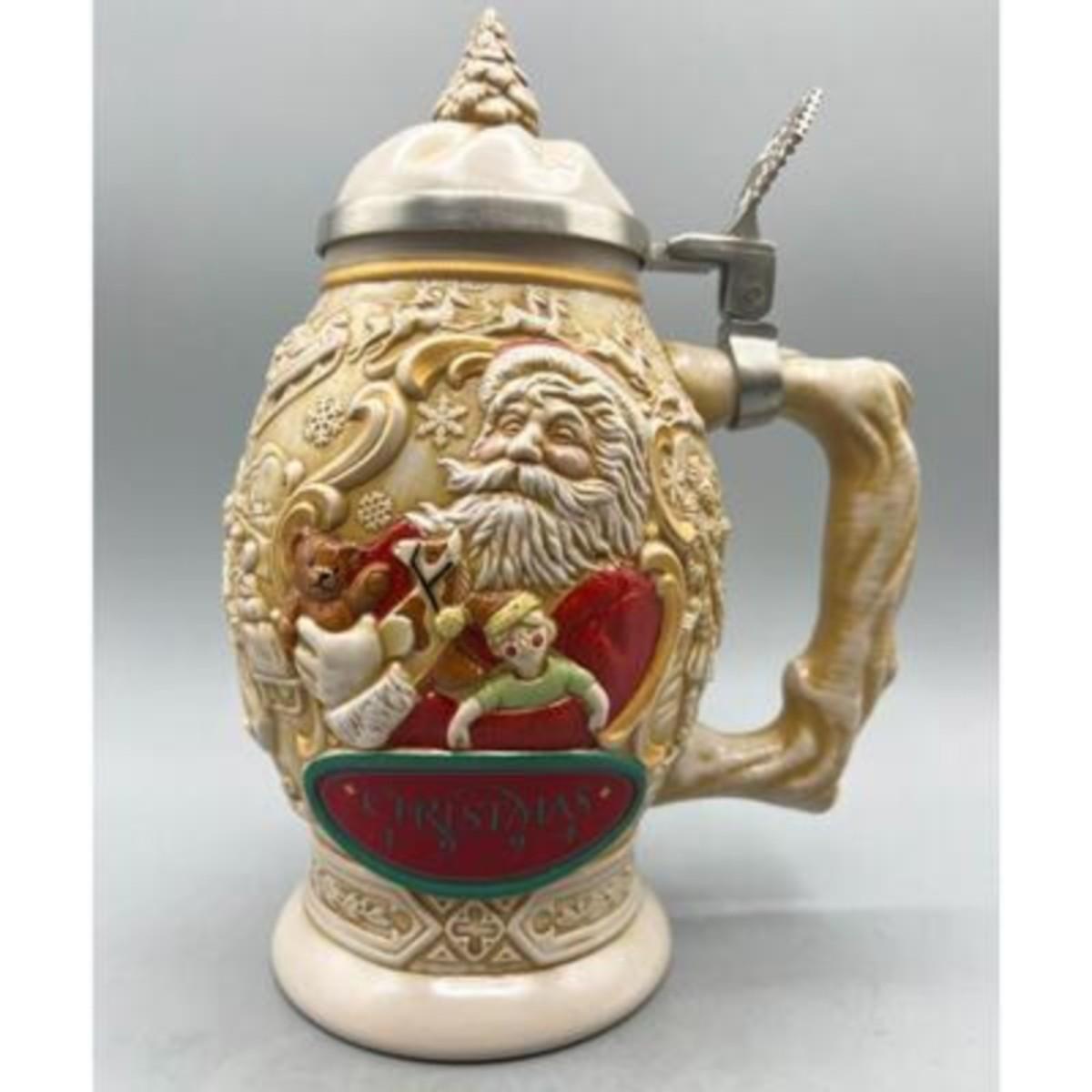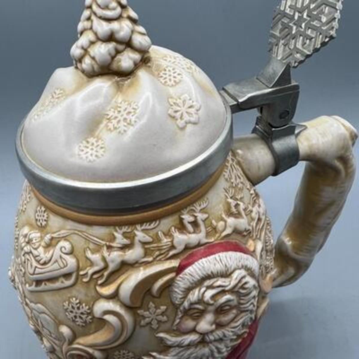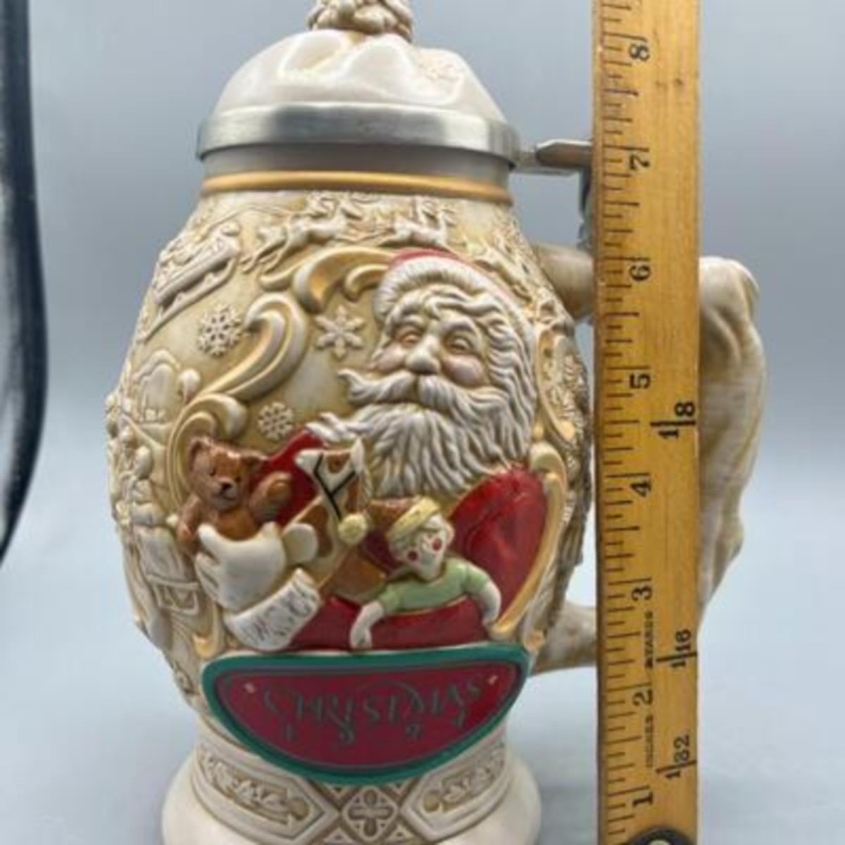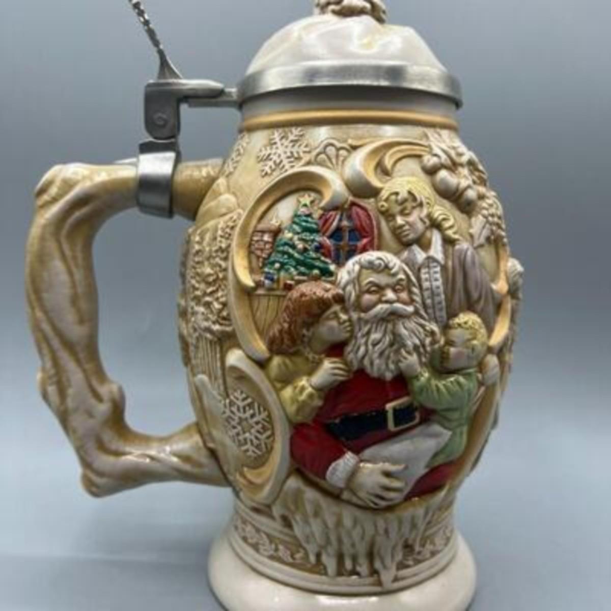 1994 Avon Father Christmas St. Nick Santa Claus Themed Lidded Beer Stein Mug