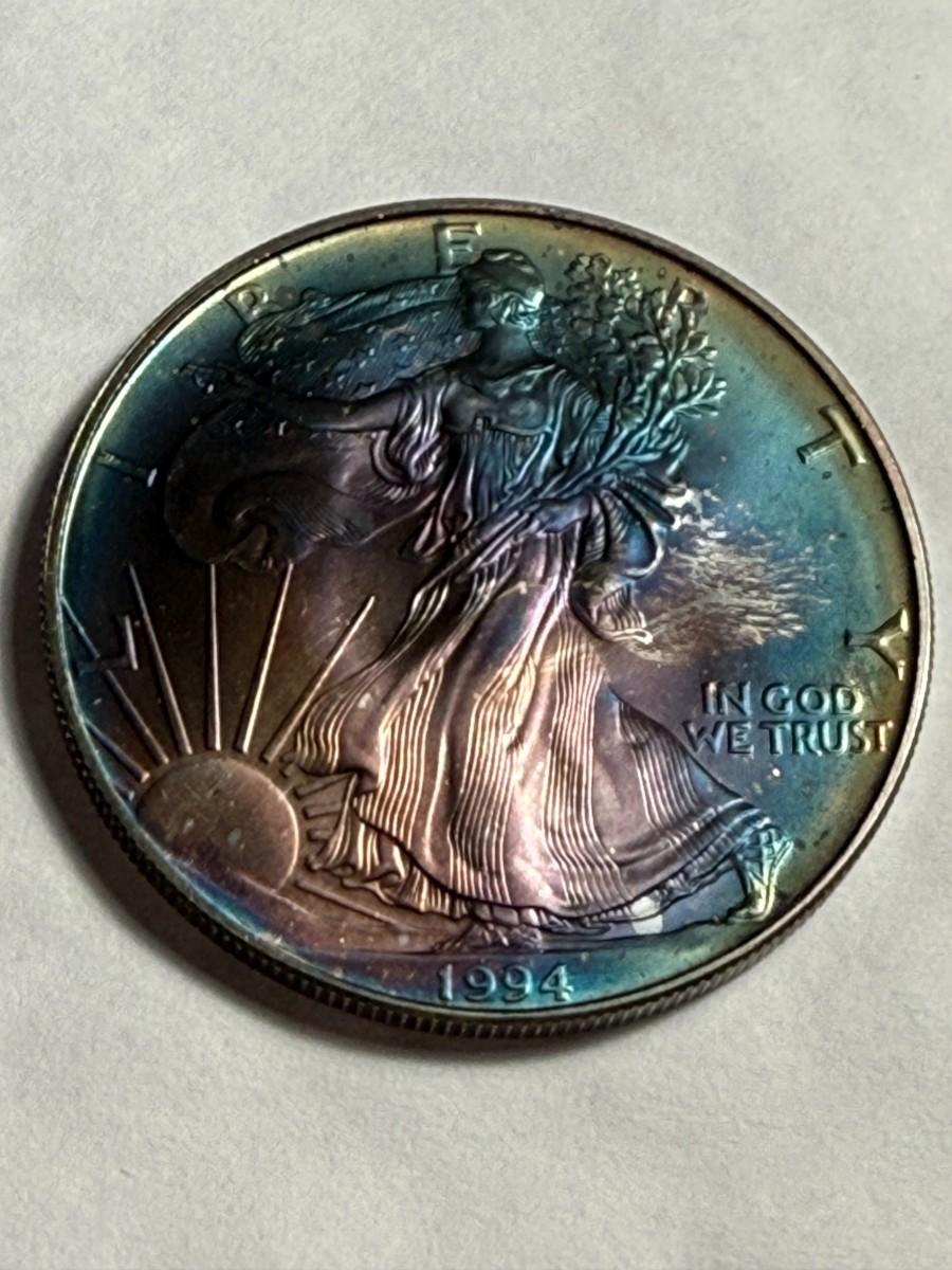 1994 CHOICE UNCIRCULATED CONDITION ALBUM TONED SILVER EAGLE DOLLAR AS PICTURED. $5 DOMESTIC SHIPPING.