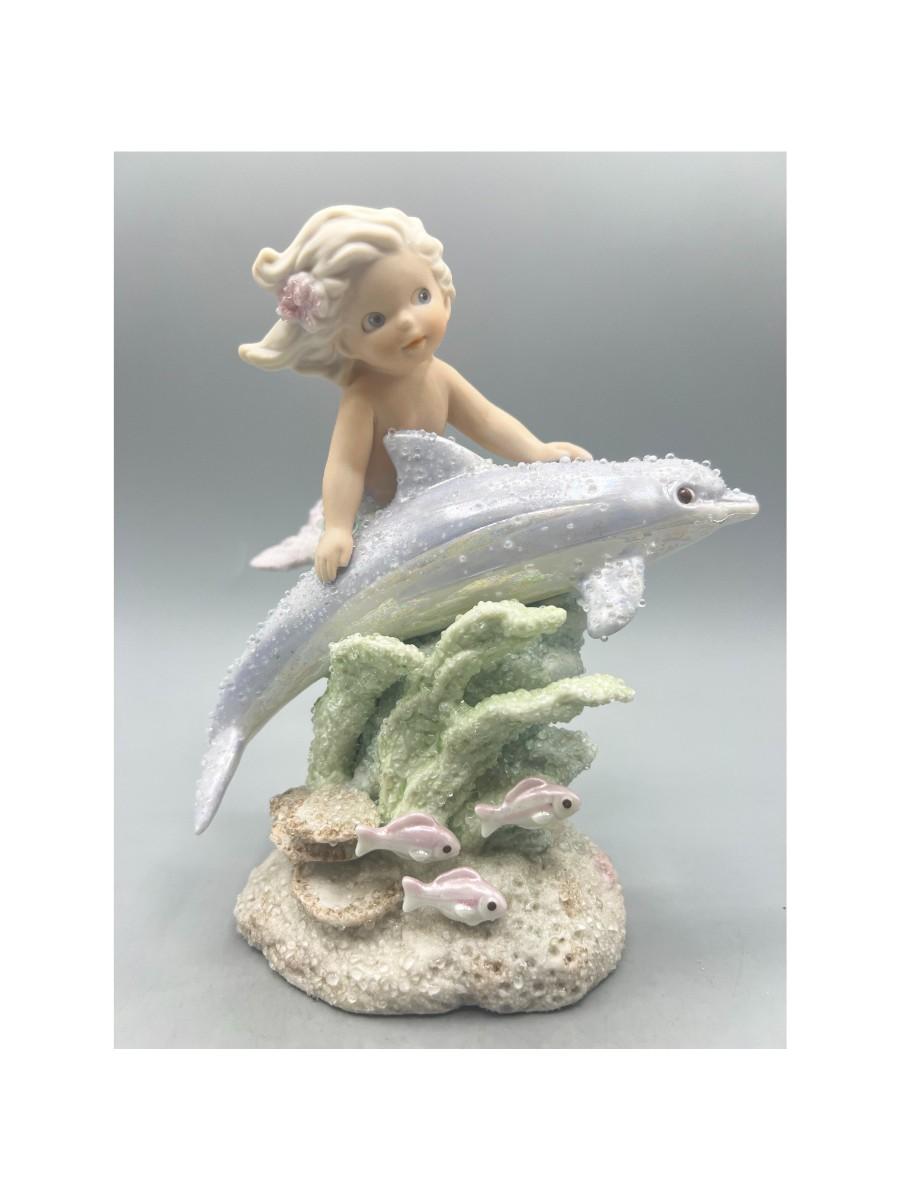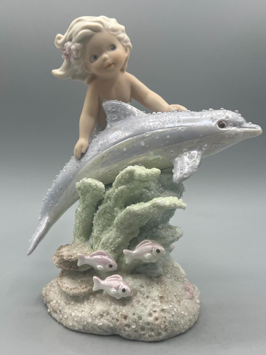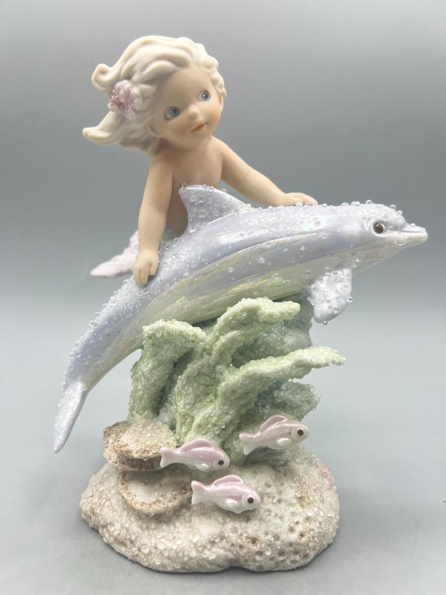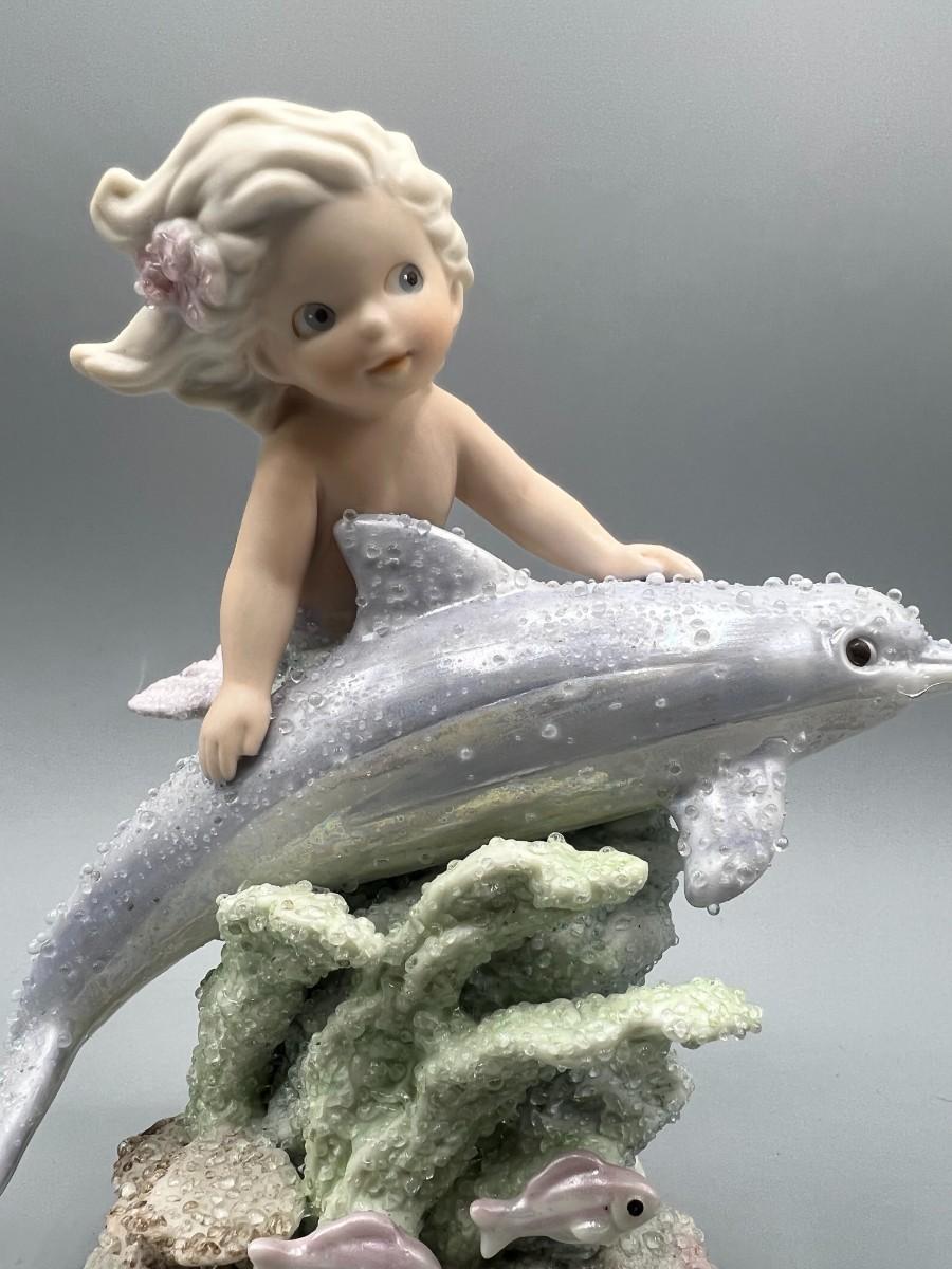 1994 Coral Kingdom Mermaid Figurine Esadora. Little mermaid with dolphin. Numbered edition. Good condition. Almost 7" tall.