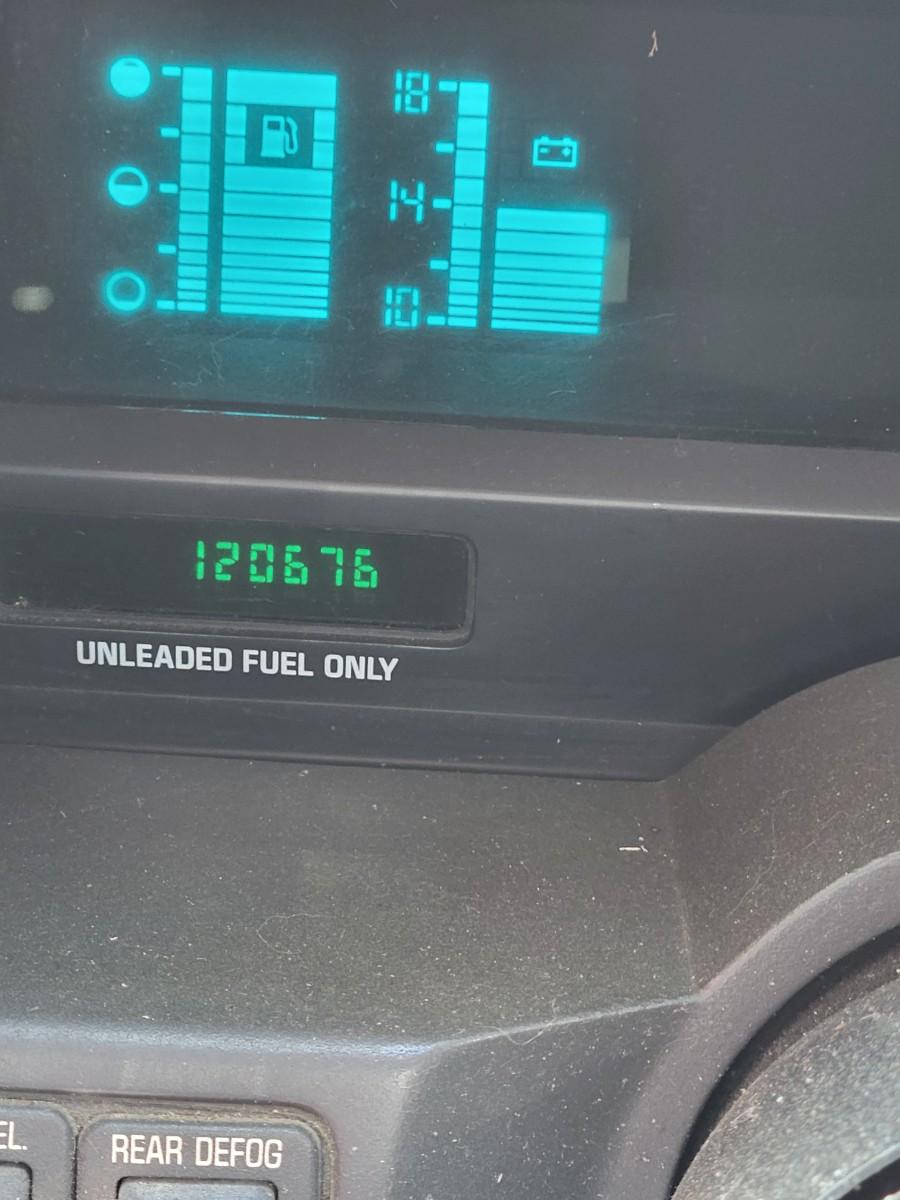 120K miles. This vehicle was used solely for family trips. Back seat does fold down into a bed and had overhead lighting equipped.