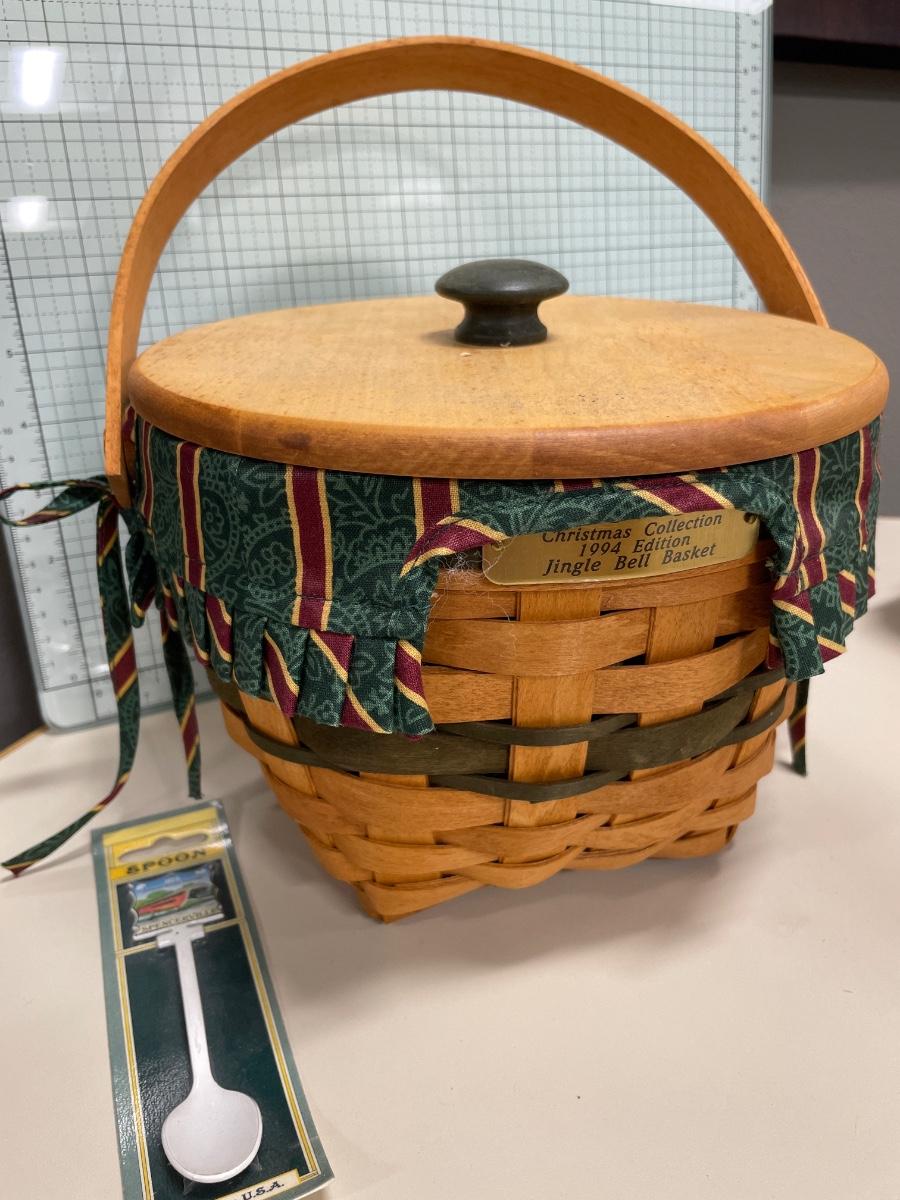 1994 Jingle Bell Basket Longaberger basket with spoon