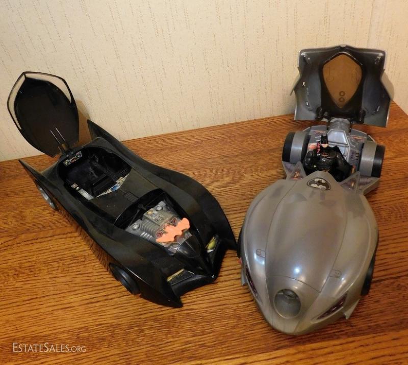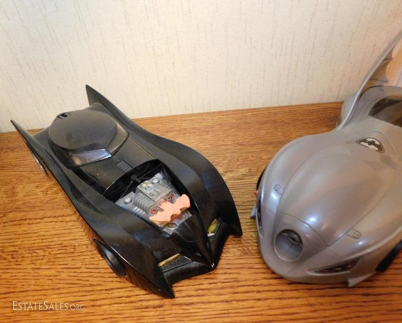 1994 Kenner Legends and Knight Striker Bat Mobile with One Batman Figurine. Missile missing from Legends. Decals on both have some peeling. No boxes.
