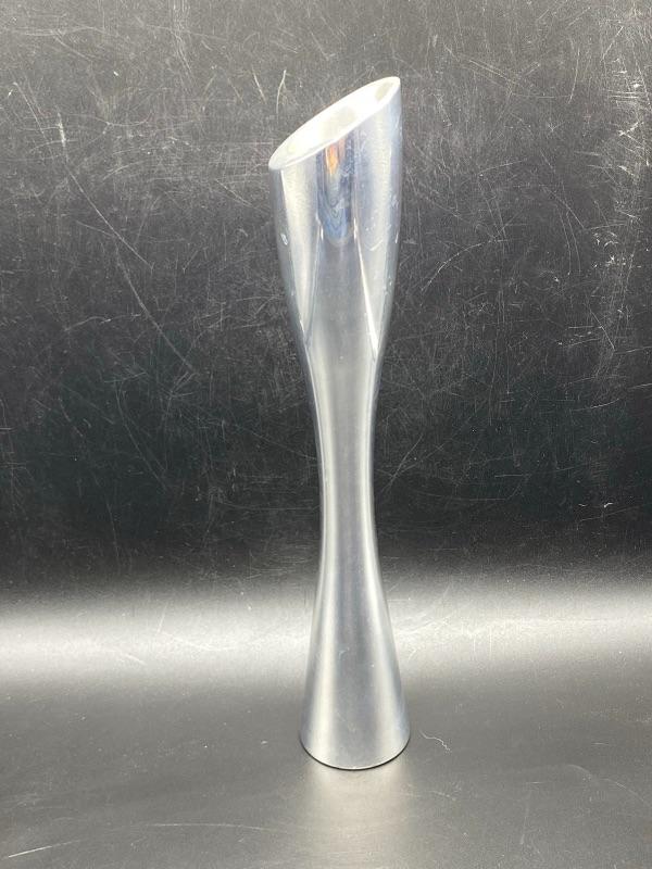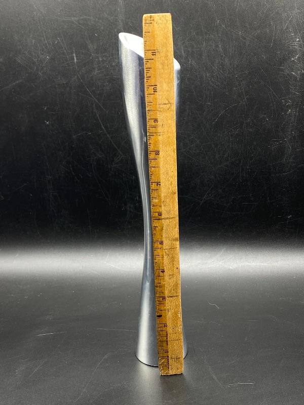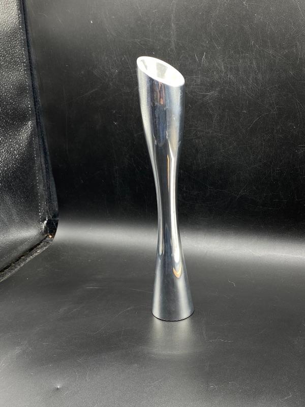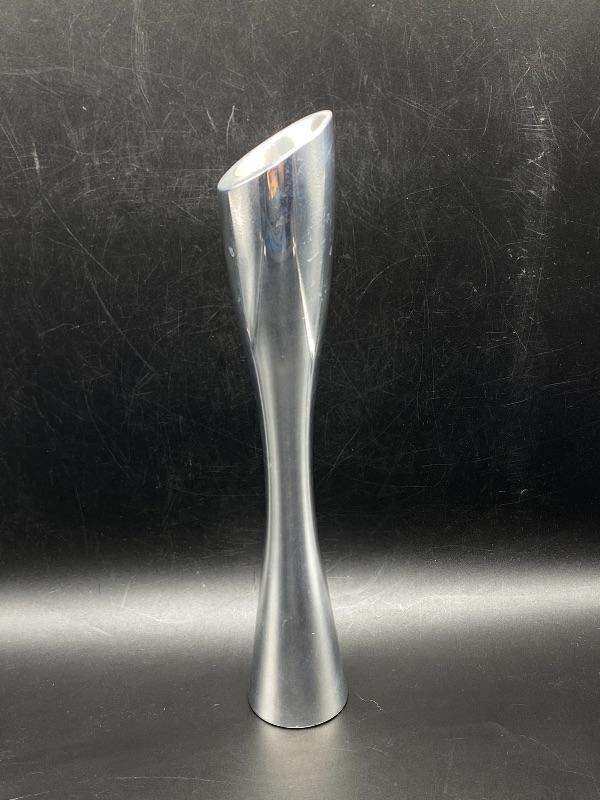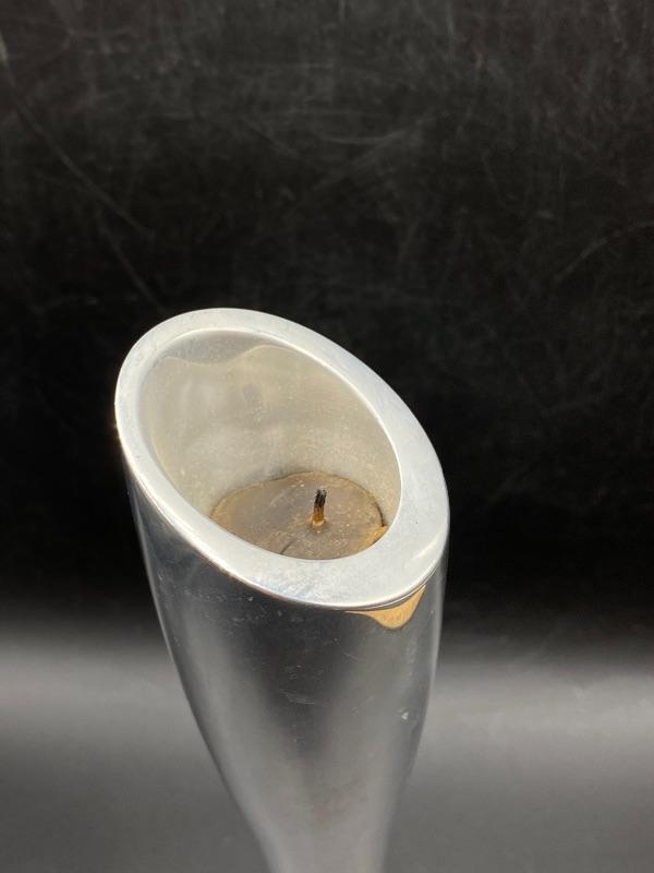 1994 Nambe Studio stainless steel candlestick holder. Signed on the bottom. Stands almost 12".