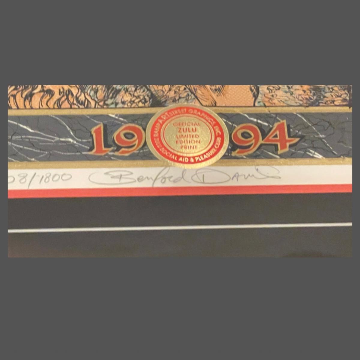 Original 1994 Krewe of Zulu Print - signed & numbered by Artist Benford Davis. 508/1800 Mint condition. Approximately 38” x 27”. This poster also has a collectible doubloon set in the frame. Priceless.