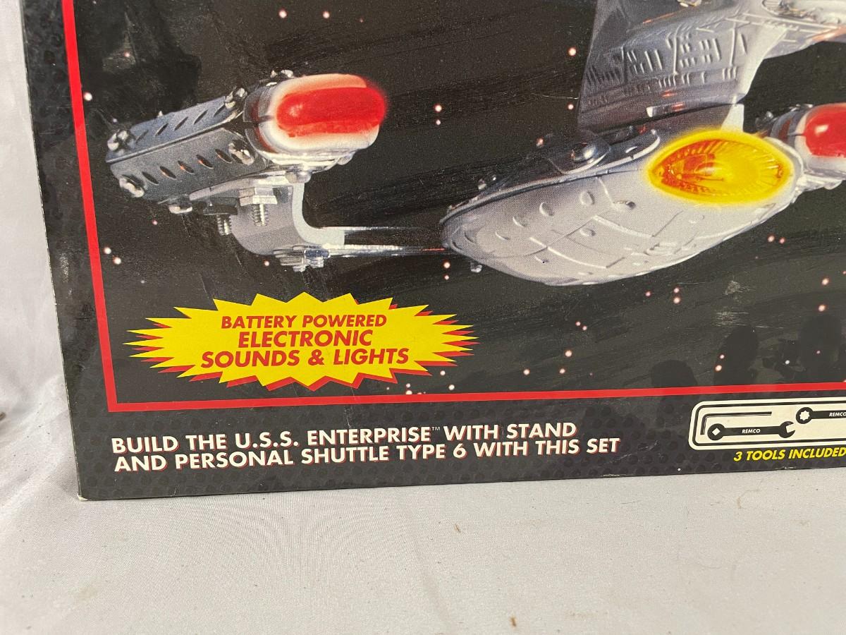 This is a kit to build the U.S.S. Enterprise and personal shuttle type 6 and includes a stand. It does not appear to have ever been used.