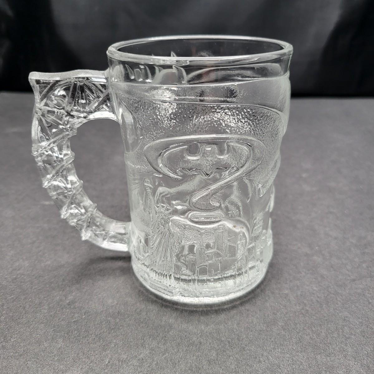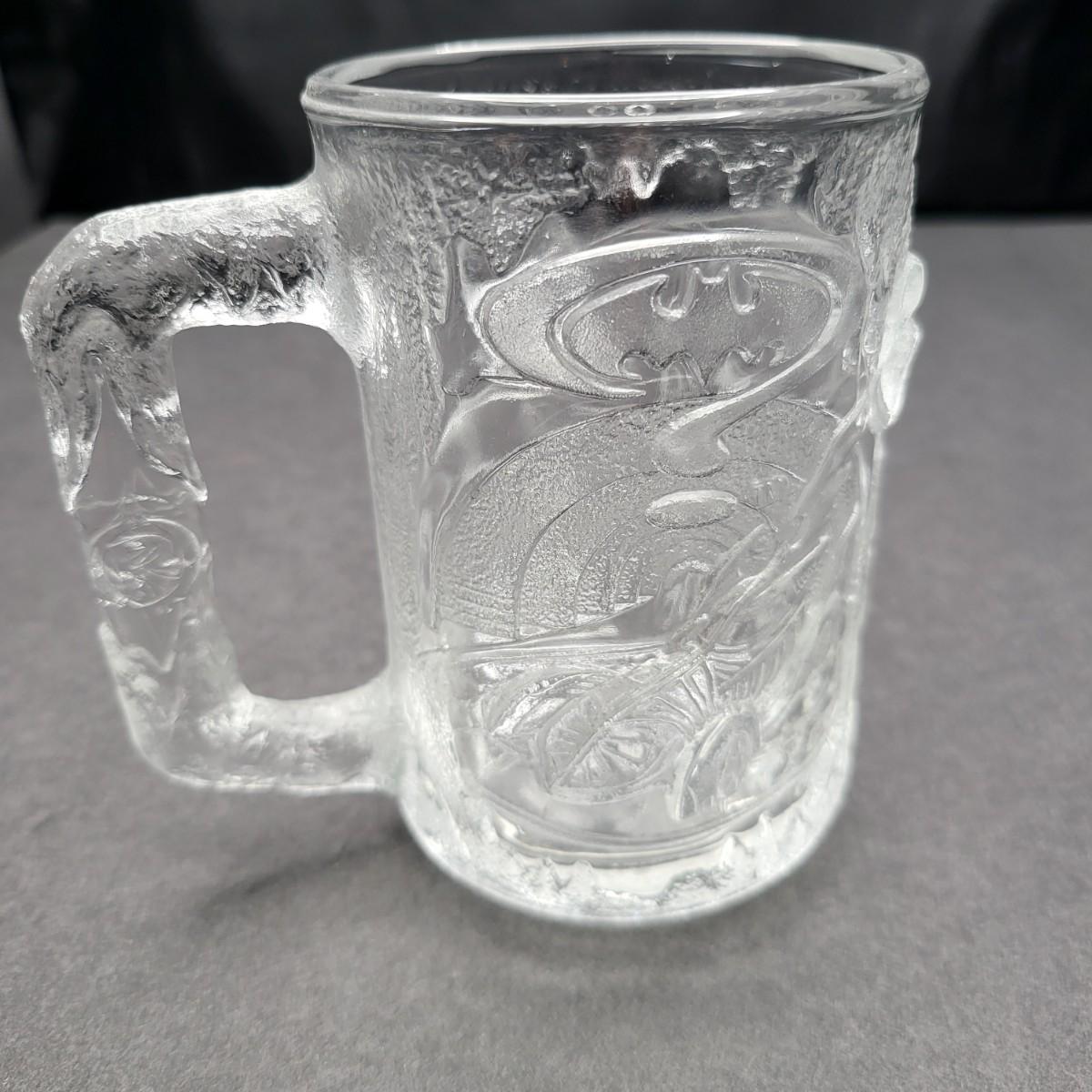 1995 DC Comics, Batman Forever, Made in France for McDonalds 4" tall, clear glass, Batman & Robin Mugs. No chips or breaks, very good condition.