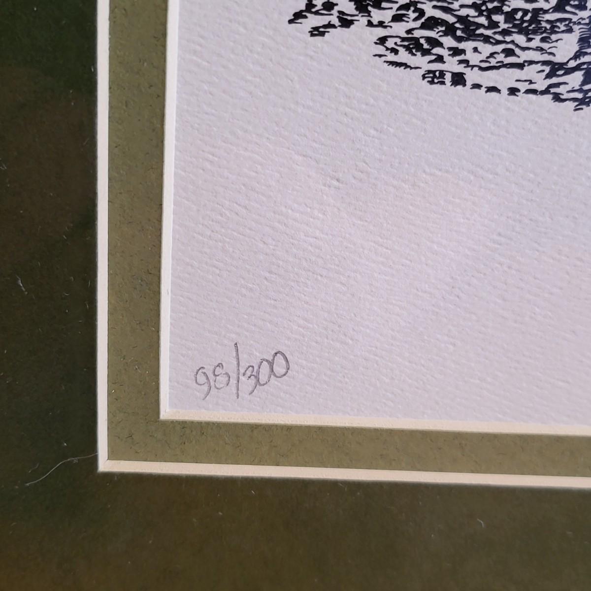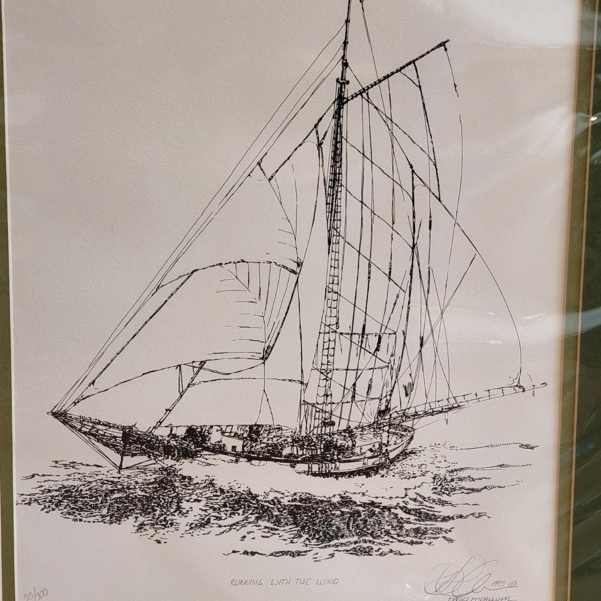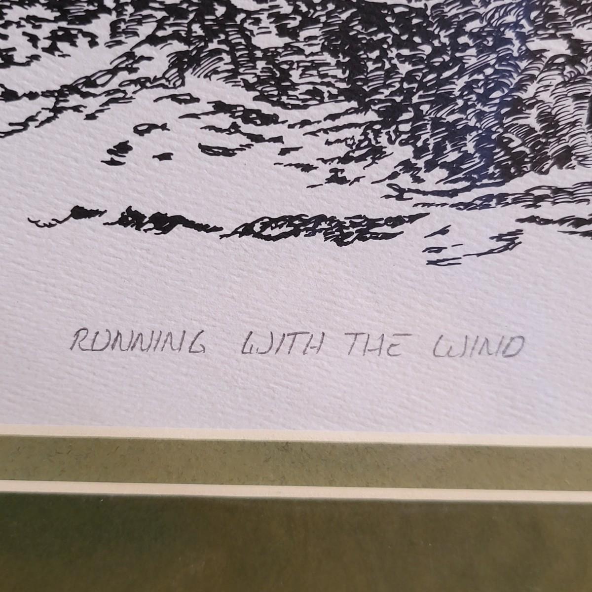 Artist David (Dave) McCallum, 18" x 24", drawing print 'Running With The Wind'. Unframed, in protective plastic seal. Olive green matting. Pencil Signed and numbered 95 out of 300.