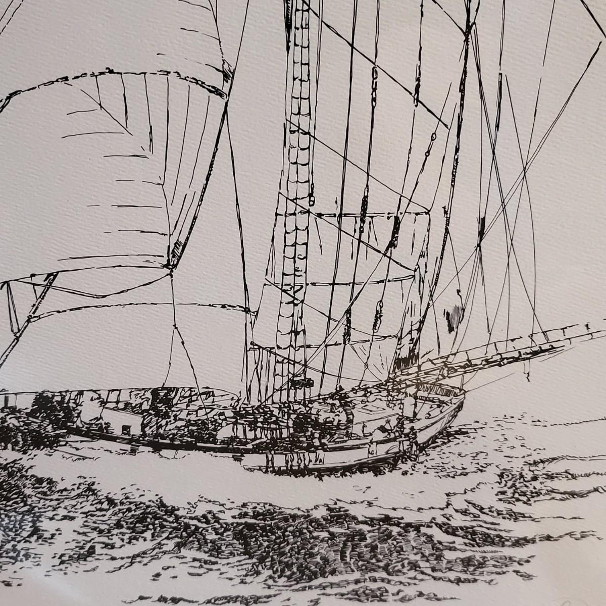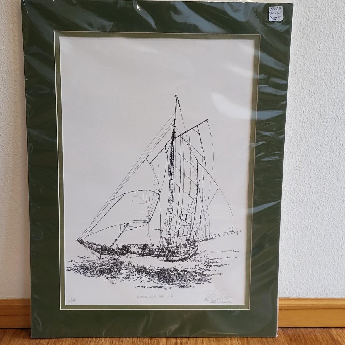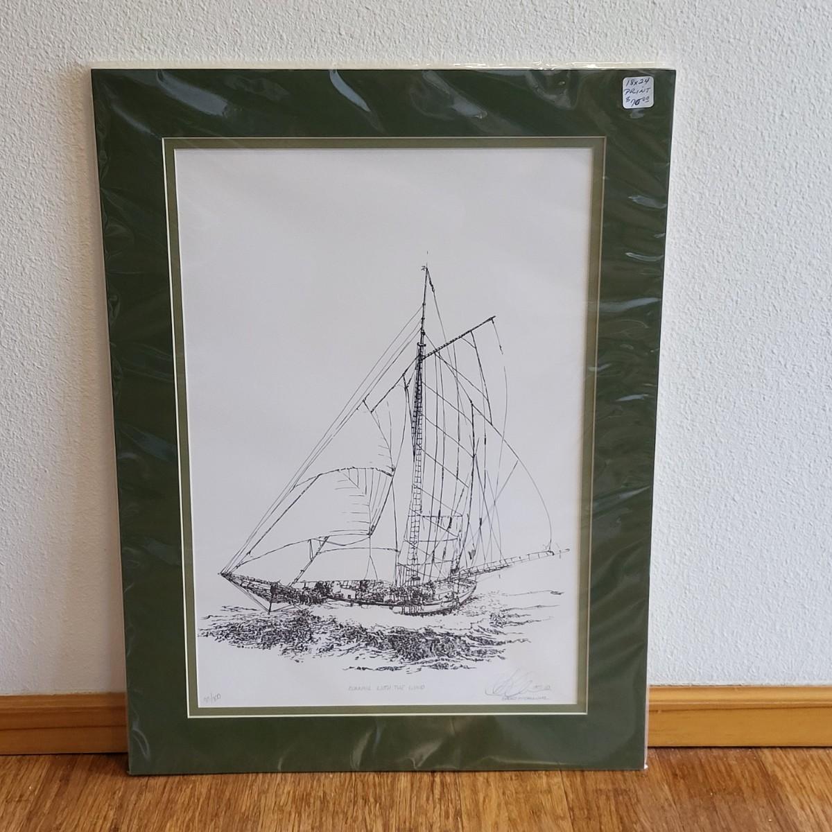 Artist David (Dave) McCallum, 18" x 24", drawing print 'Running With The Wind'. Unframed, in protective plastic seal. Olive green matting. Pencil Signed and numbered 95 out of 300.