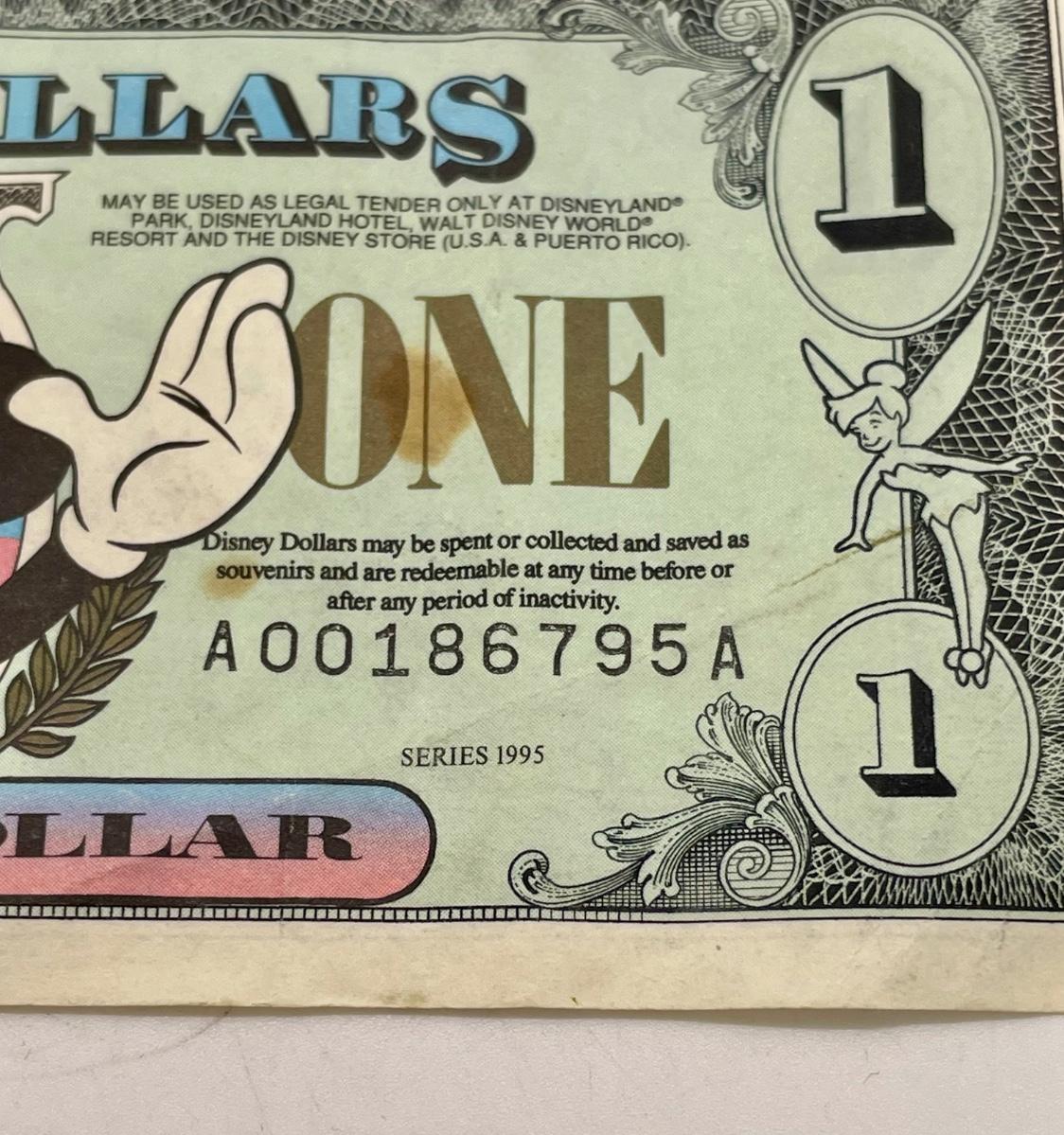 Disney Dollars $1 Mickey 1995 A Series. Low Number.