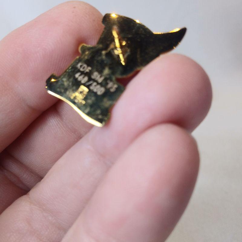 This item is a 1995 Limited Edition Gold Metal Derby Pin in its original velvet box. It is inscribed as number 468 of 500. The pin is marked 1/5 - 10K. Starting Bid/Reserve is $15.