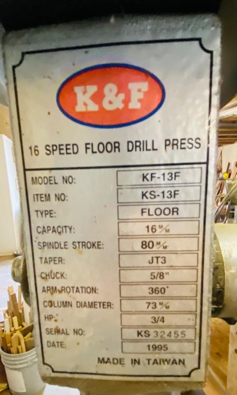 1995 K&F 16 Speed Floor Drill Press, Model KF-13F