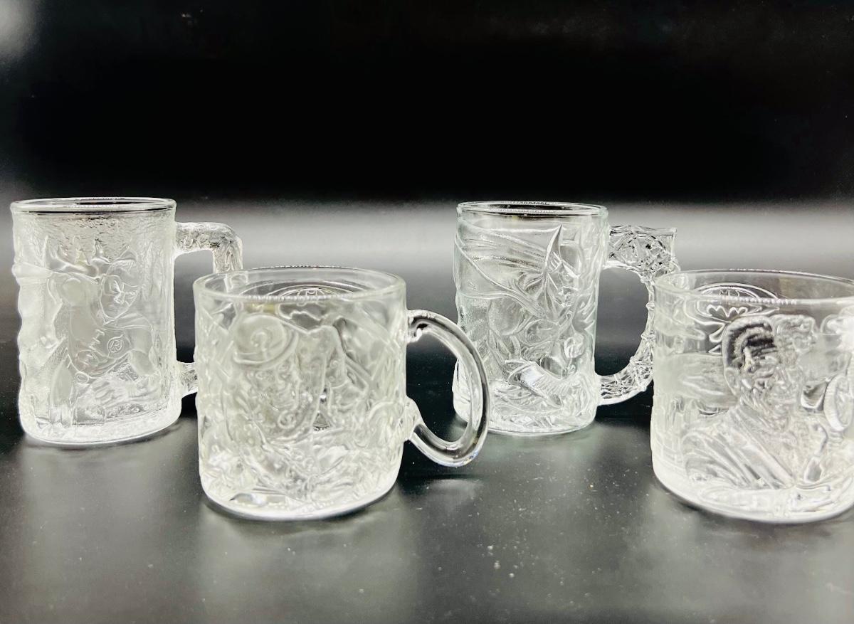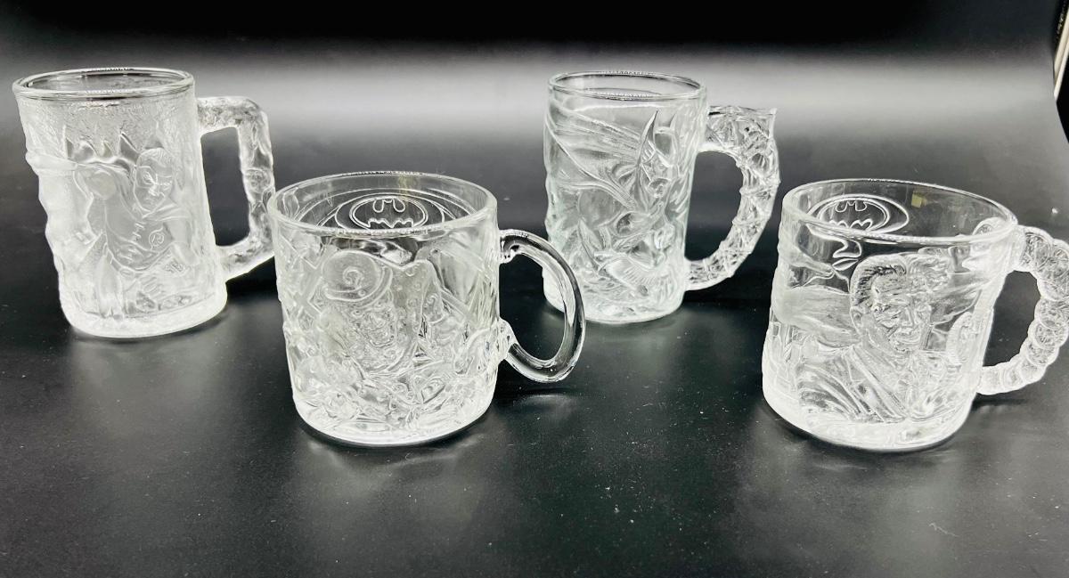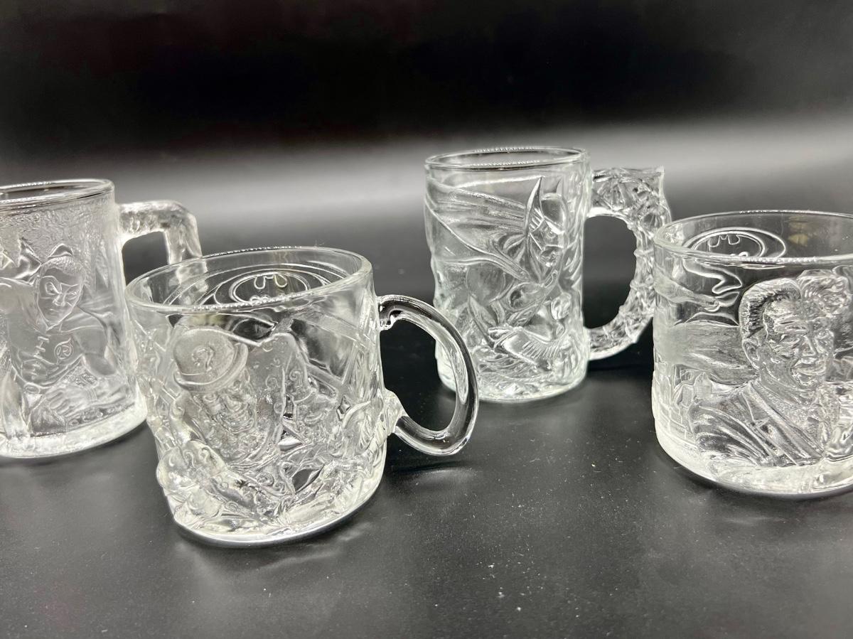 Set of 4 1995 McDonald’s Batman Forever Series Glass Mugs. Includes RIDDLER, TWO FACED, BATMAN & ROBIN.