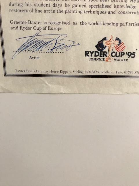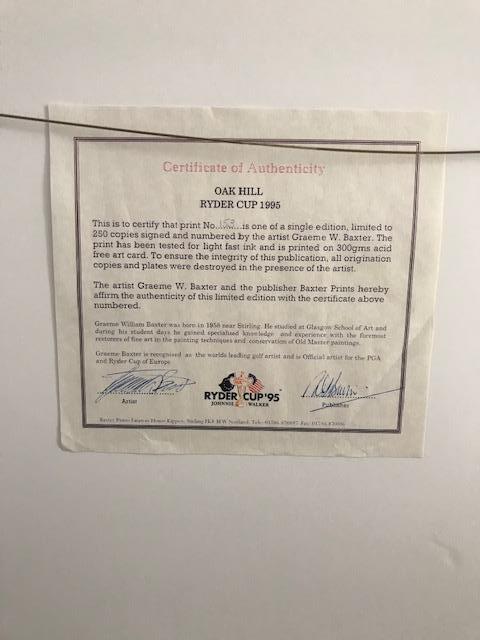 1995 Ryder Cup Limited Edition. Numbered 153/250. By Graeme W. Baxter 1995. Double mat. Measures about 30” W X 28.5” H.