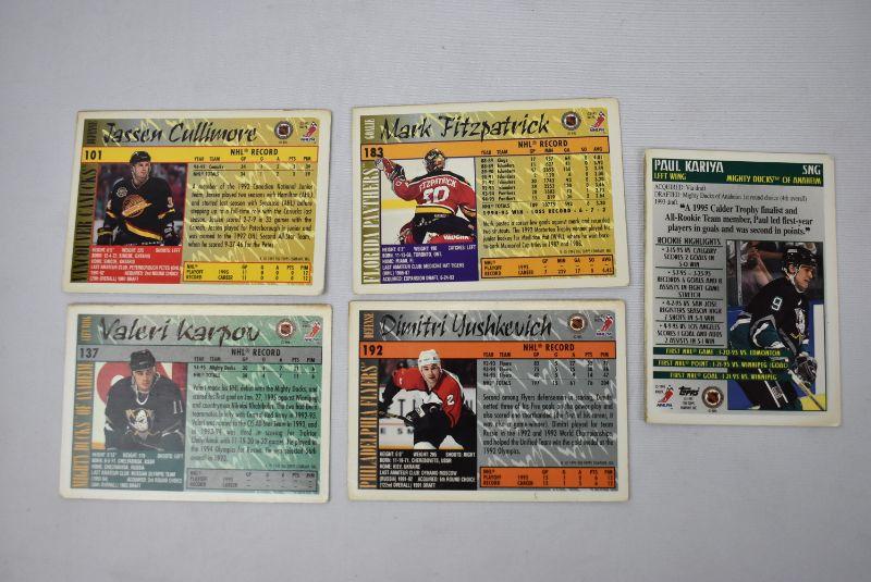 Qty 5 Hockey Cards by Topps: Cullimore, Fitzpatrick, Kariya, Karpov, & Yushkevich, Vintage 1995