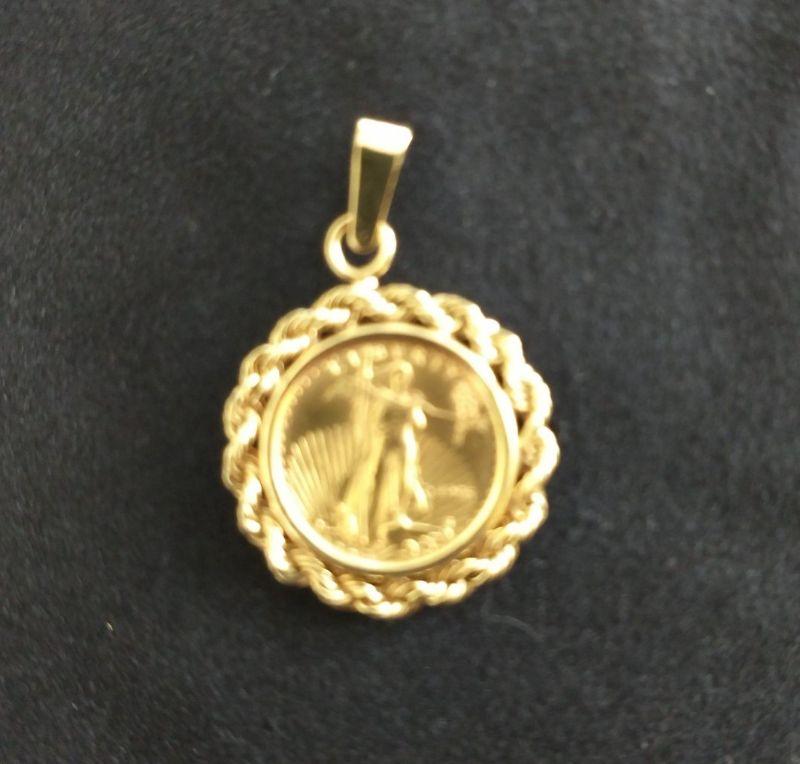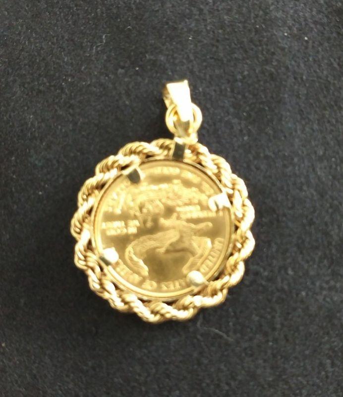 1995 US Mint $5 Fractional Gold Coin 1/10 Fine Gold Set in 14K Pendant Rope