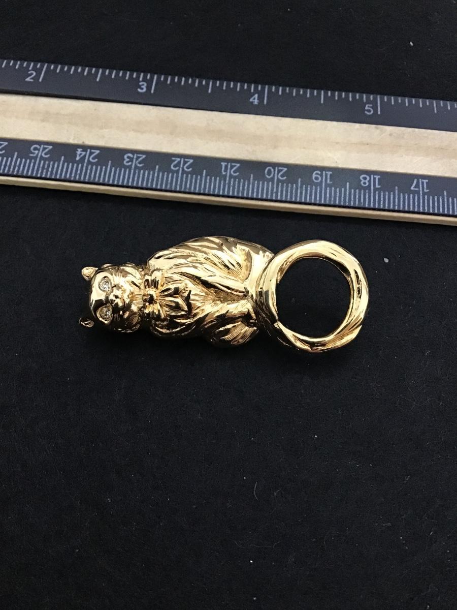 1996 Cat Lady Lovers Rhinestone eyes Brooch