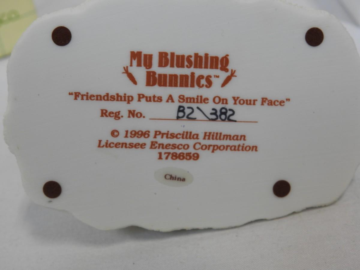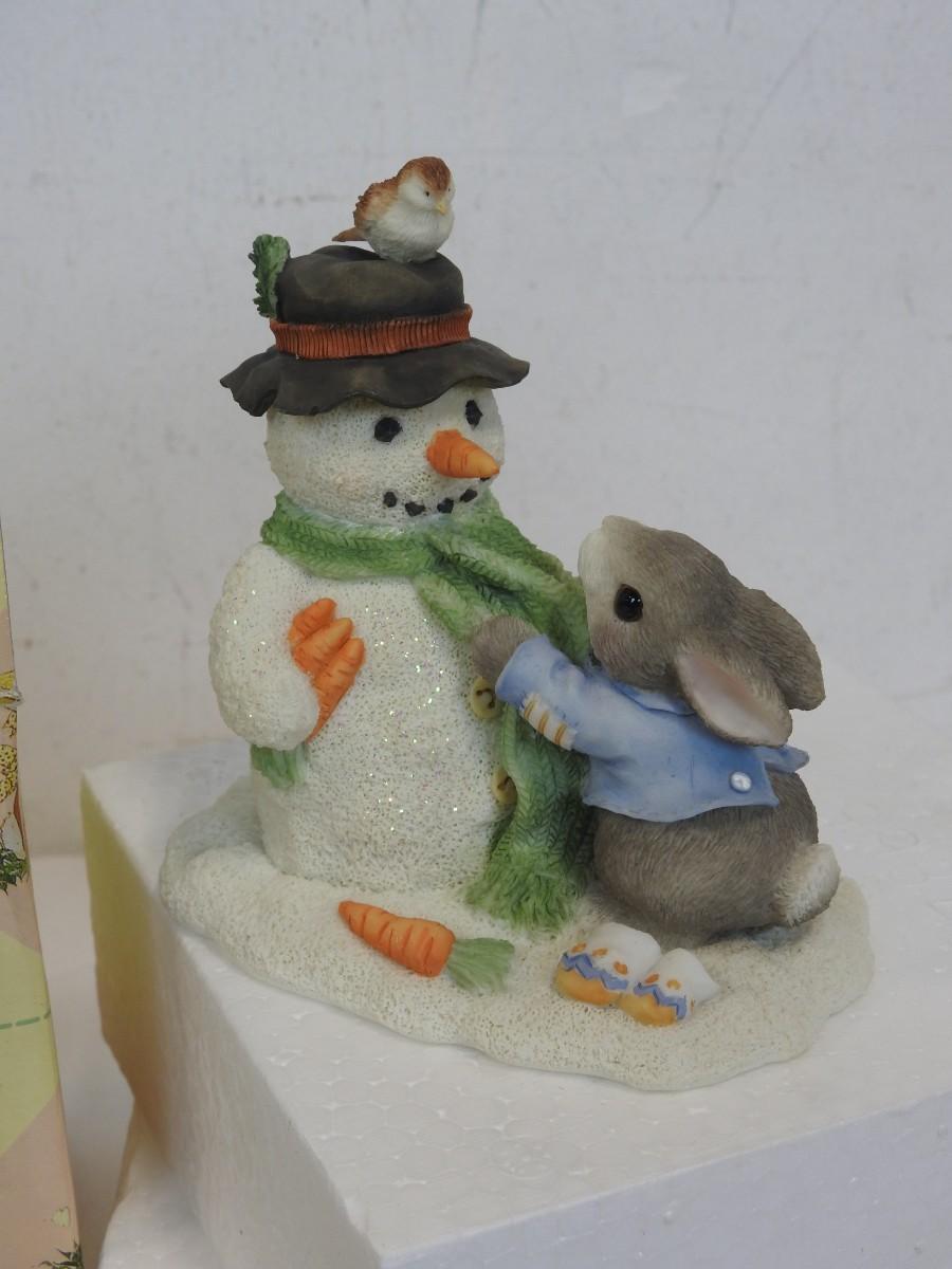 1996 Enesco My Blushing Bunnies Christmas Friendship Snowman Bunny Figurines