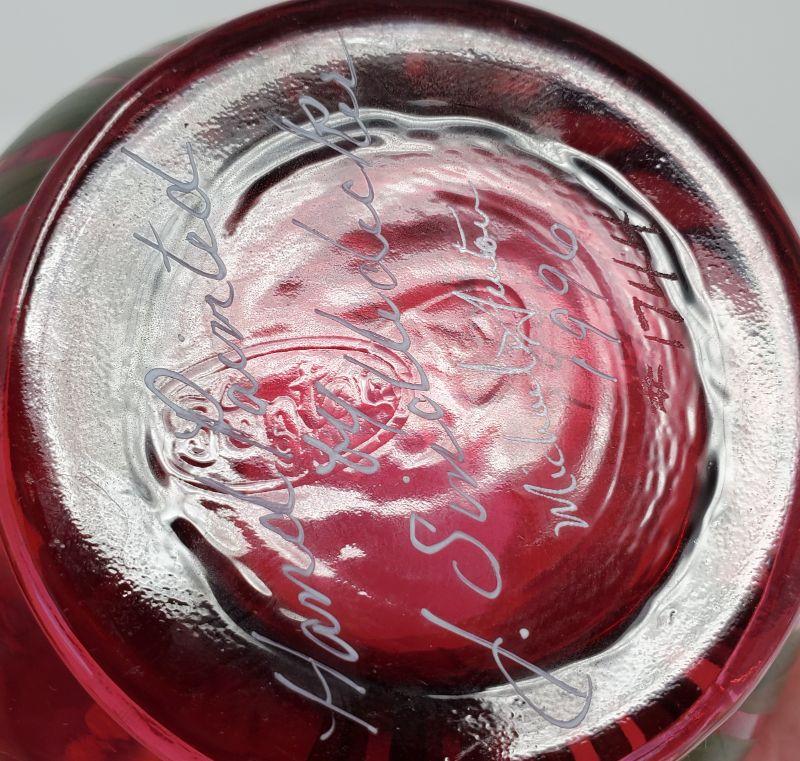 1996 FENTON RUFFLED EDGE CRANBERRY BASKET