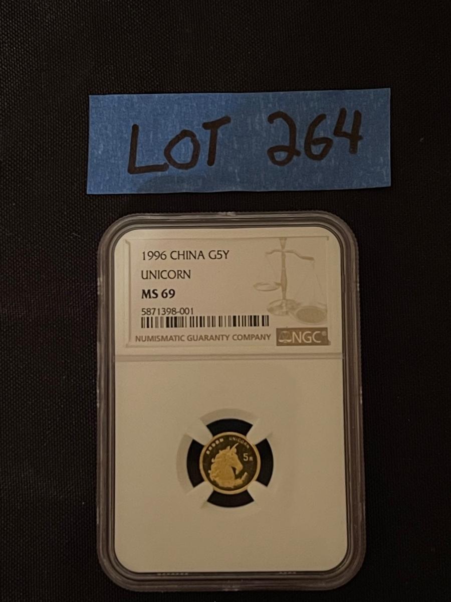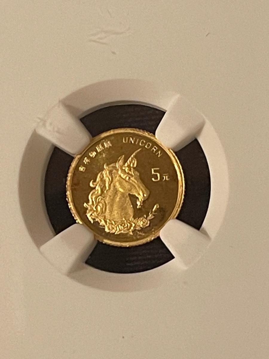 1996 Gold 5 yuan Unicorn coin MS-69 Certified by NGC