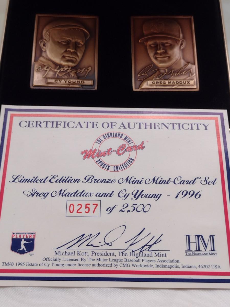 1996 Highland Mint Cy Young and Greg Maddux Bronze Mini Mint-Card Set Limited Edition 257/2500 (#3)