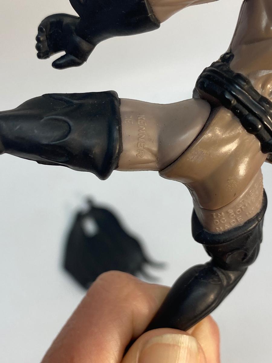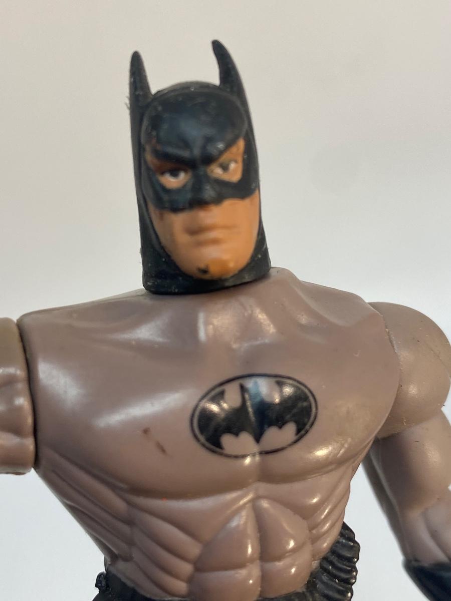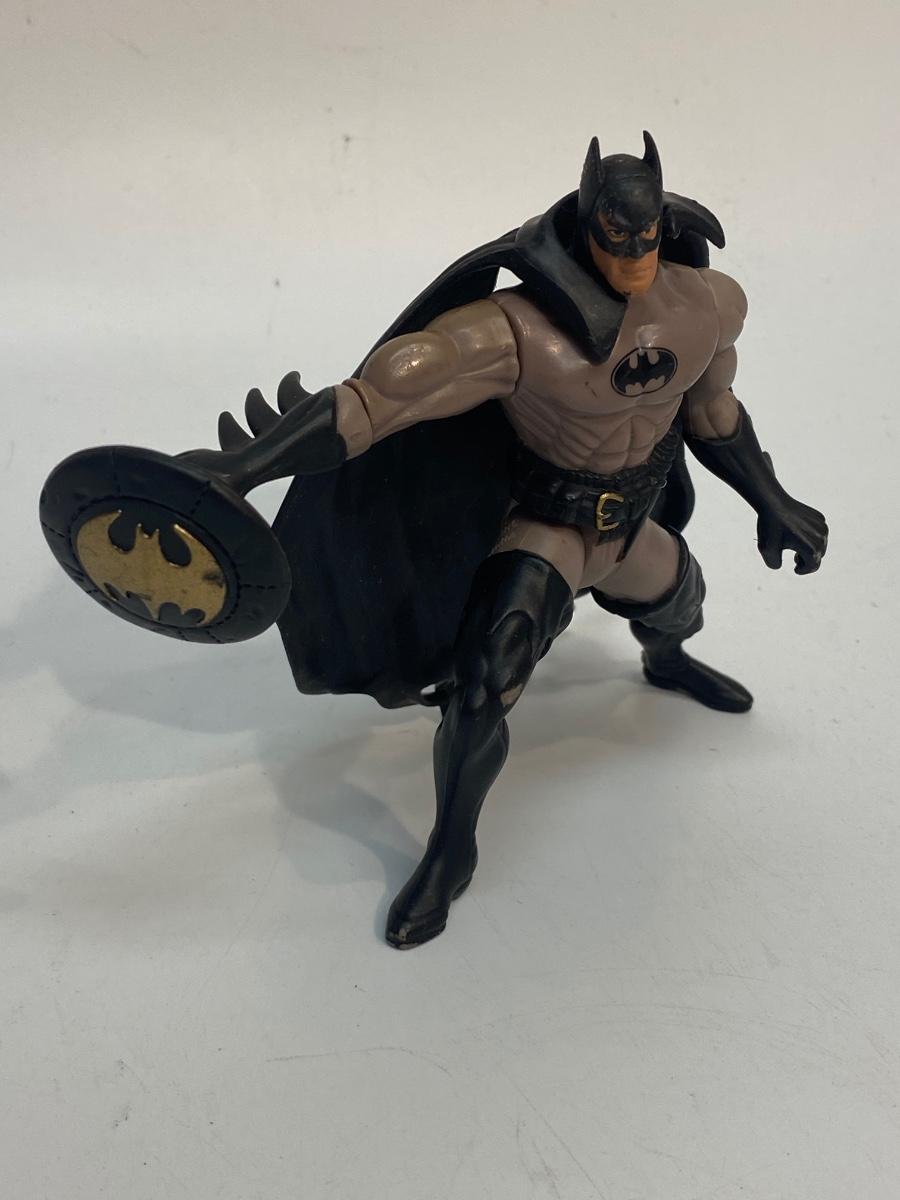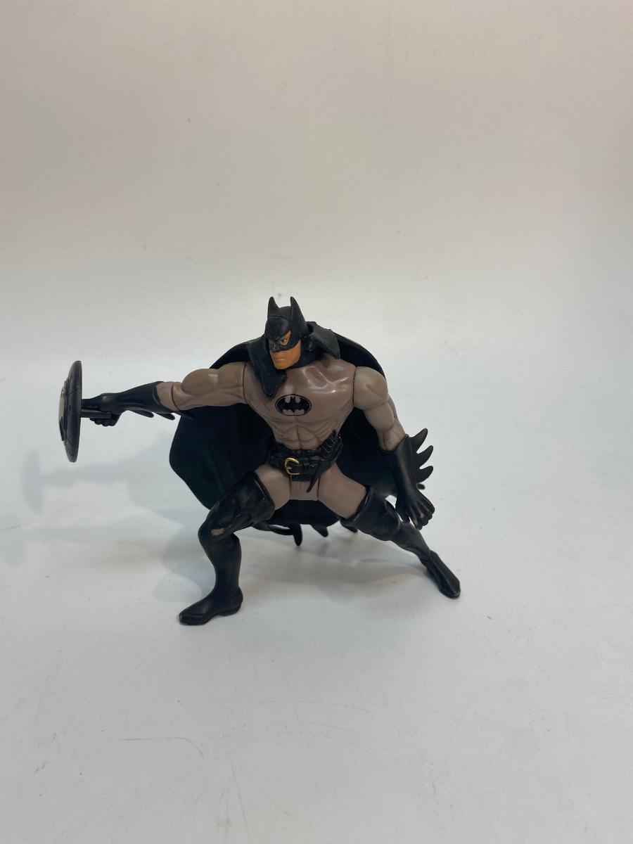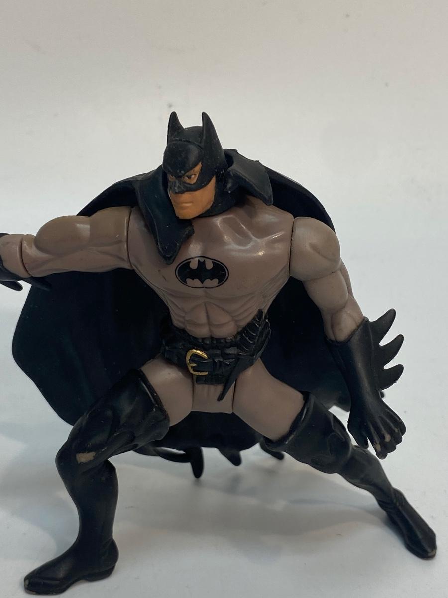 1996 Kenner Batman Loose Action Figure. Signs of age and wear. Cape comes off, no weapons. Forearm spins with dial on back.
