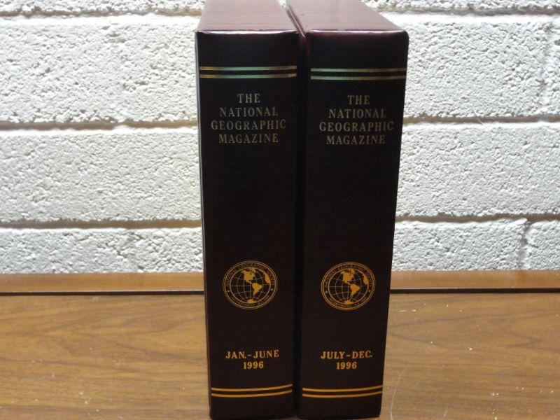 1996 National Geographic Magazine - complete set of 12 with faux leather cases Cases in great condition Books in normal good condition