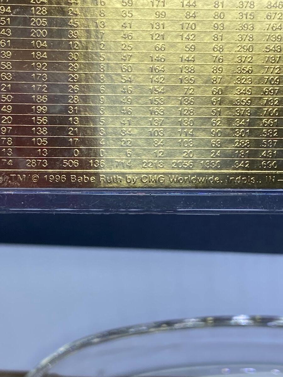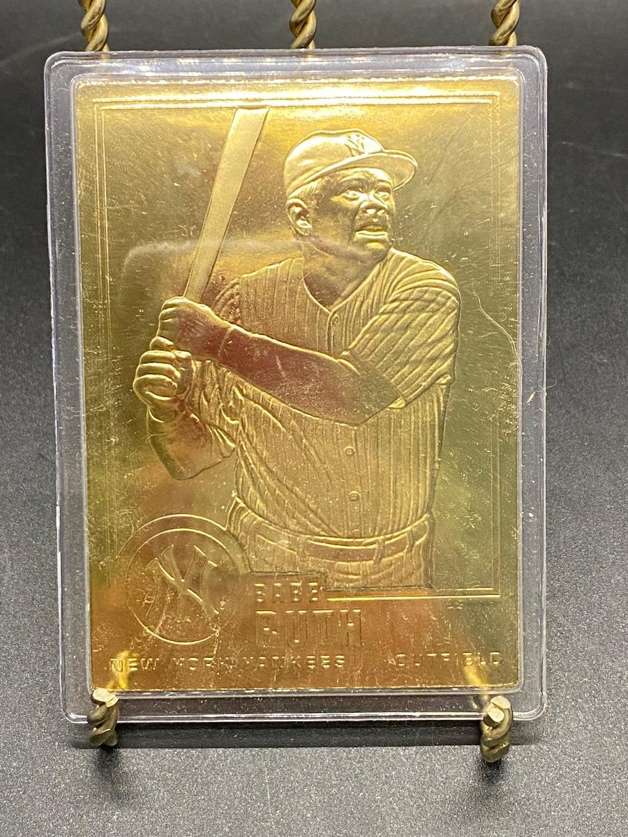 1996 CMG gold Babe Ruth baseball card. Still sealed in protective plastic. Good condition.