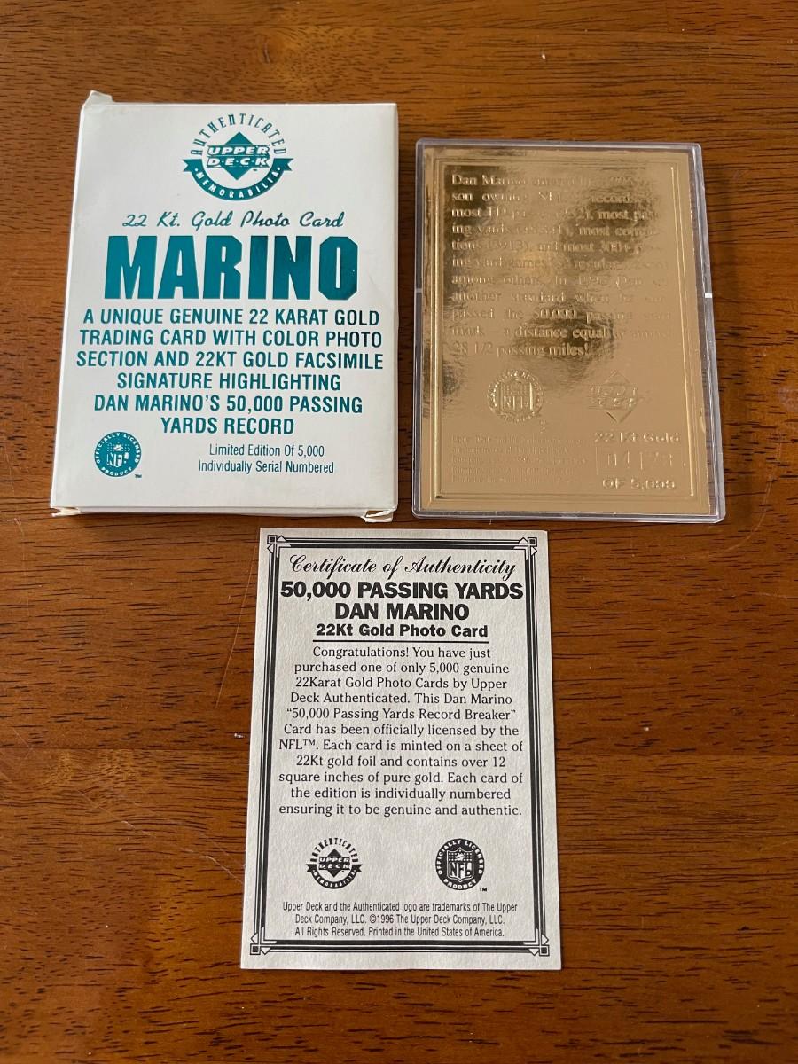 1996 Upper Deck Dan Marino 22 kt 50,000 passing yards