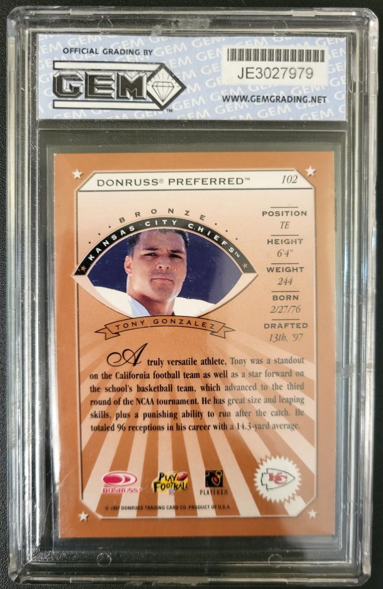 1997 Donruss Preferred Tony Gonzalez Rookie Gem Grading Gem Mint 10